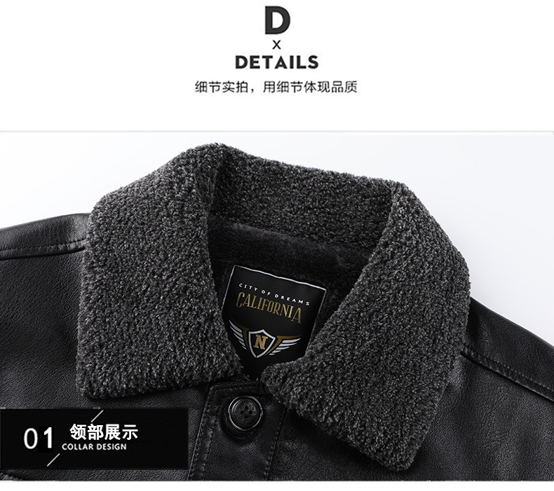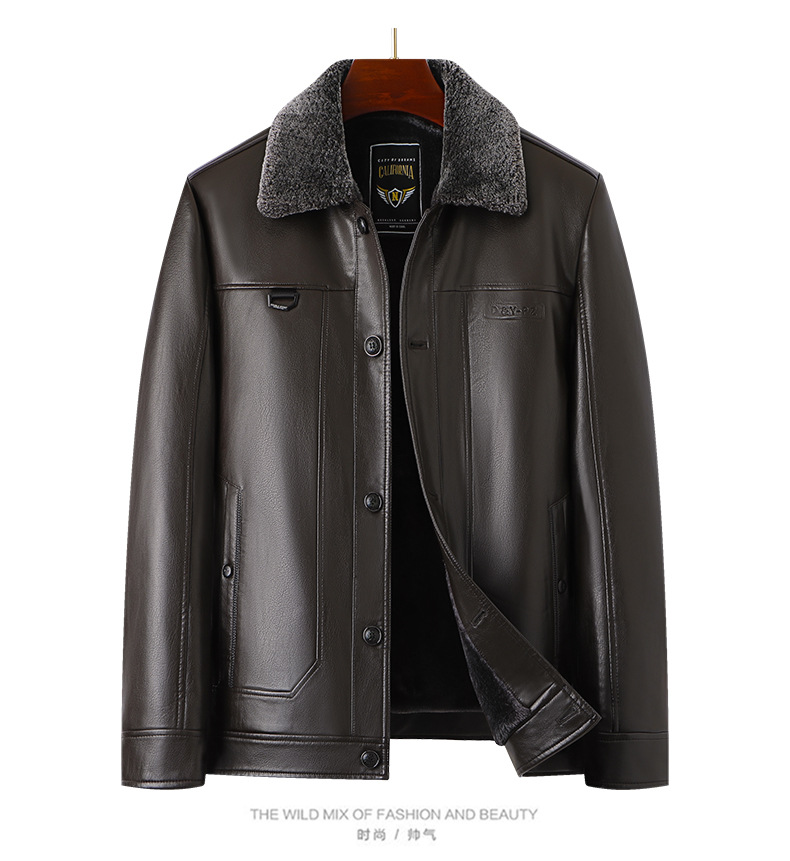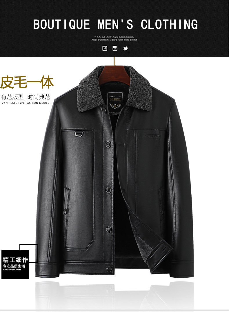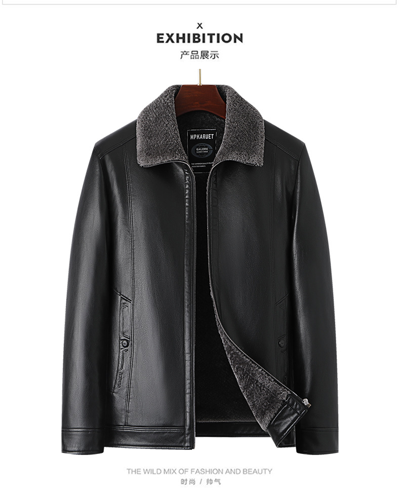 父の冬服puコートとベルベットの厚手50歳の中高年男性服ビジネスカジュアル防水防風ジャケット