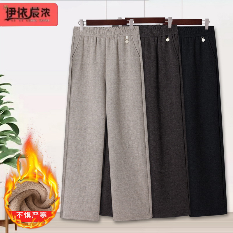 お母さん向け裏起毛ストレートパンツ 2025年冬新作 中高年女性用パンツ ゴムウエスト 万能ワイドパンツ 実店舗卸売