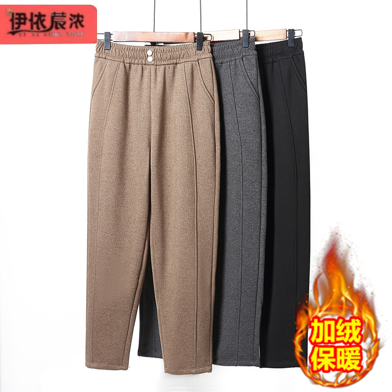 中高年のお母さんのズボンとベルベットの厚い大きいサイズのカジュアルなズボンの女性の50歳の80歳のおばあさんのズボンのゆるい柔らかいズボンの女性
