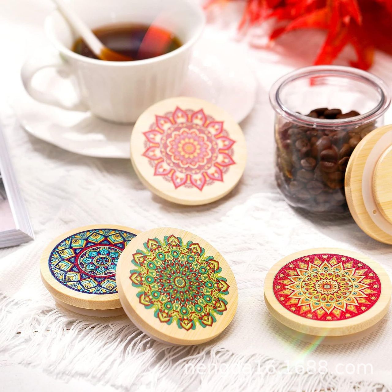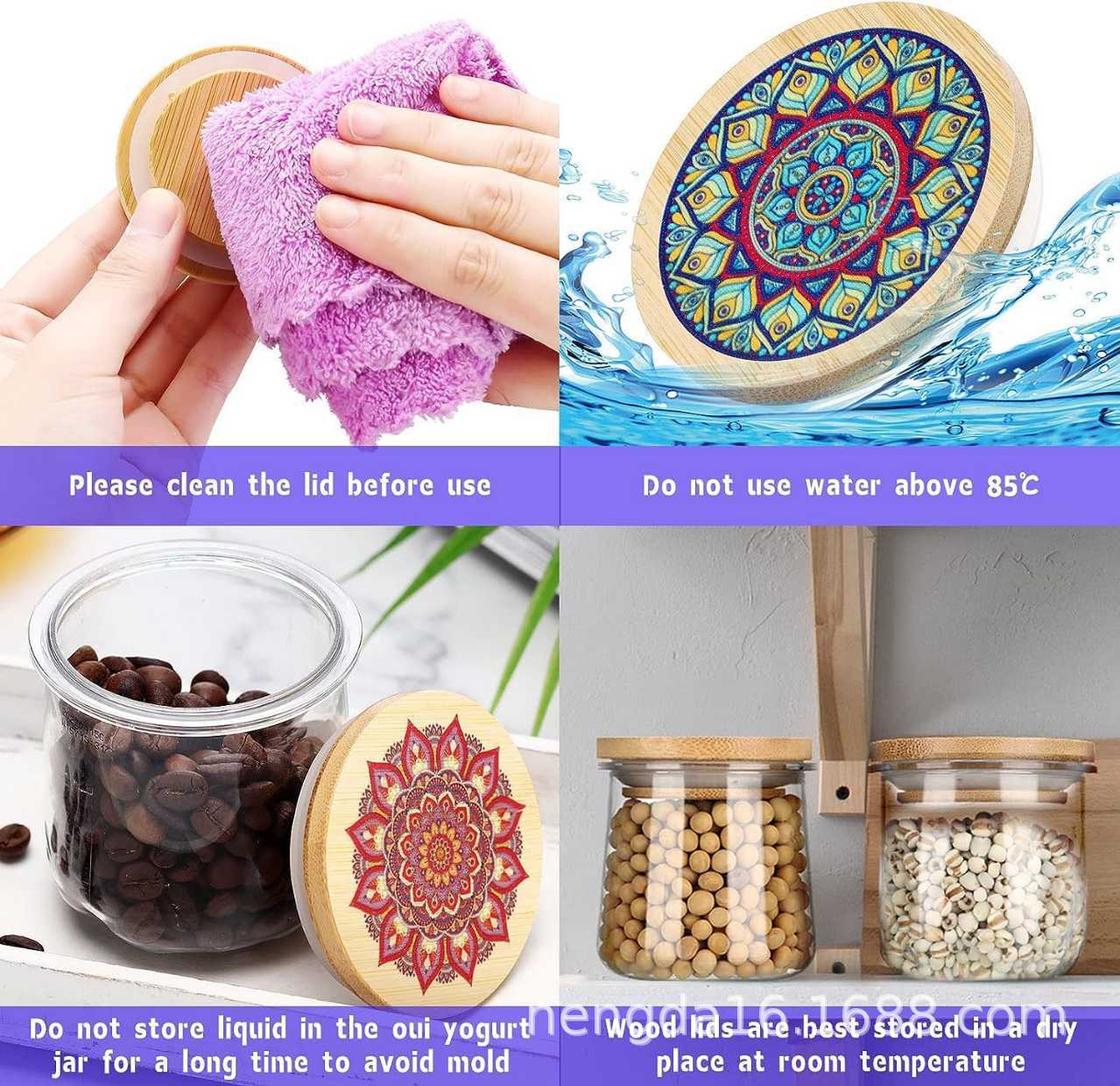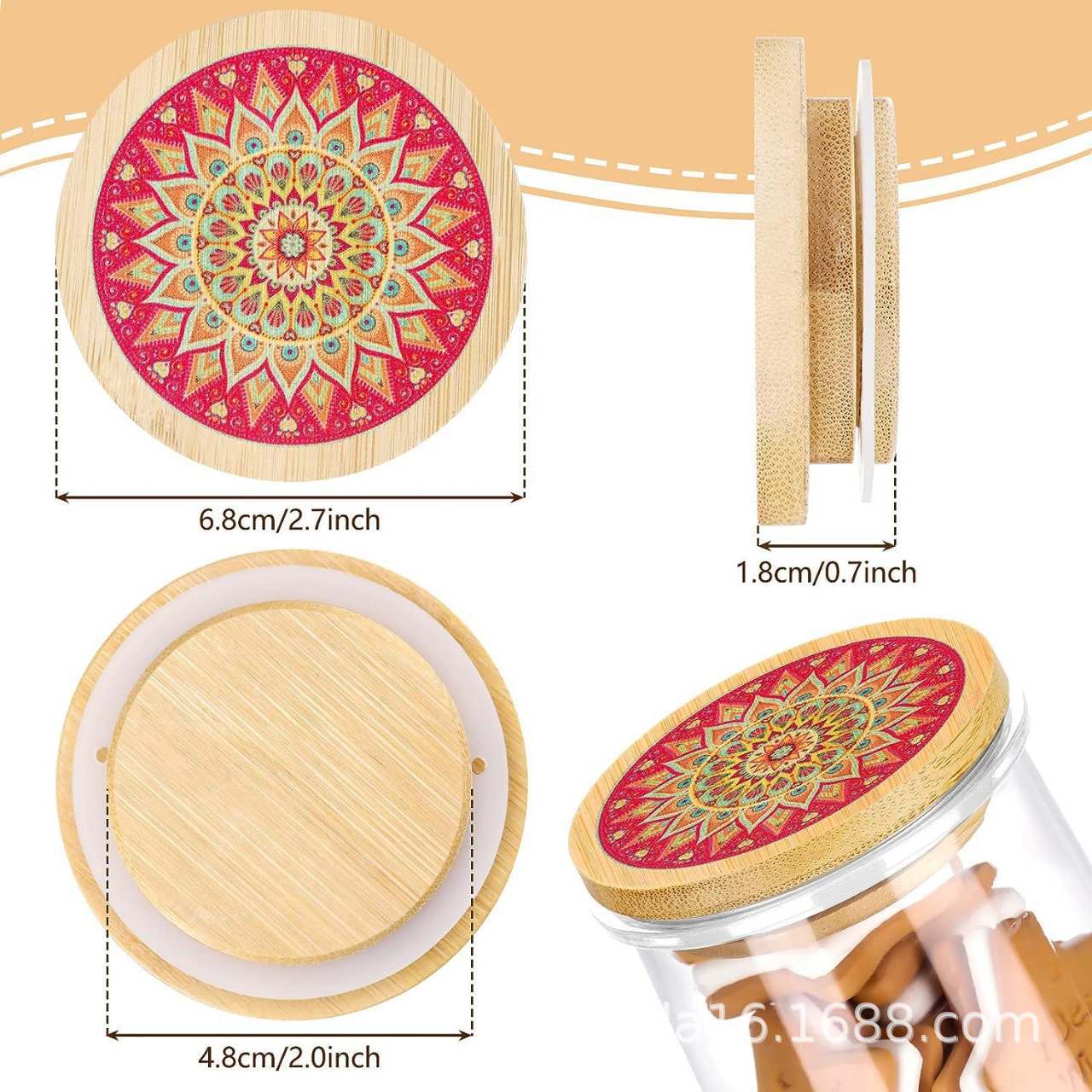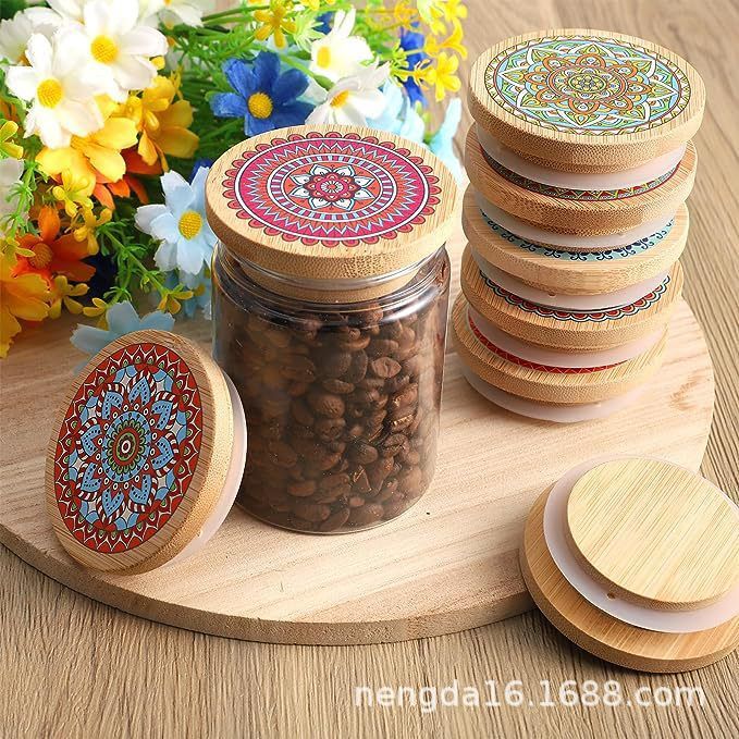 ヨーグルト蓋彩図曼荼羅花型竹蓋密封缶蓋竹木蓋布丁瓶ヨーグルト蓋竹製円形
