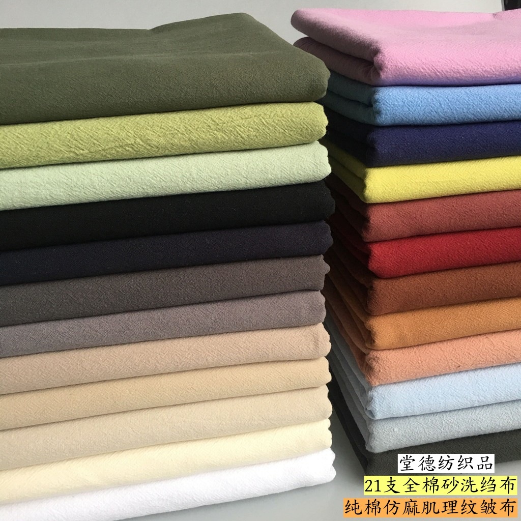 素色 纯色水洗棉绉布 砂洗褶皱肌理纹棉麻皱布连衣裙全棉宝宝布料