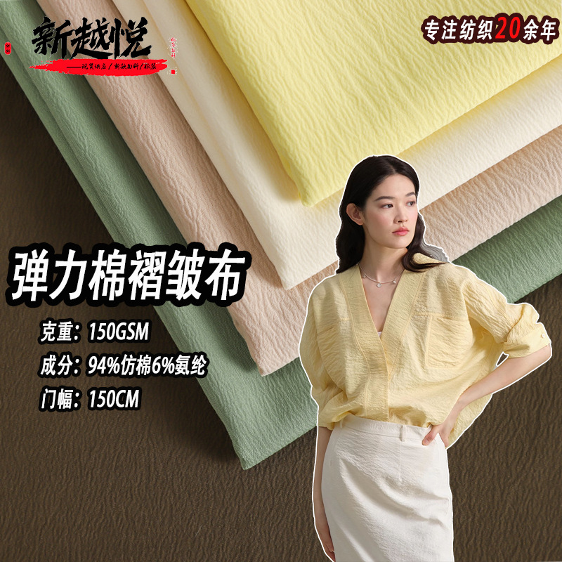 現物弾力綿シャツ生地水洗いシワ通気綿感樹皮シワファッション漢服日焼け止め生地