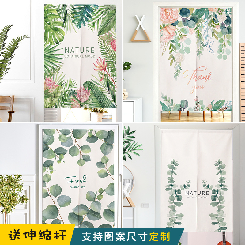 北欧緑植のれんins綿麻布芸遮断カーテン寝室キッチントイレ装飾遮光カーテン