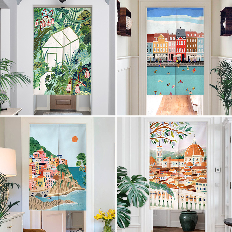 小清新創意北欧布芸のれん寝室改造キッチンシェード