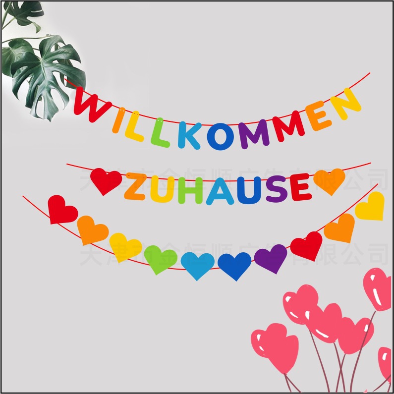 ホームパーティー装饰プルフラッグハートハートフラッグカラーwillkommen zuhauseフェルトプルオーバー