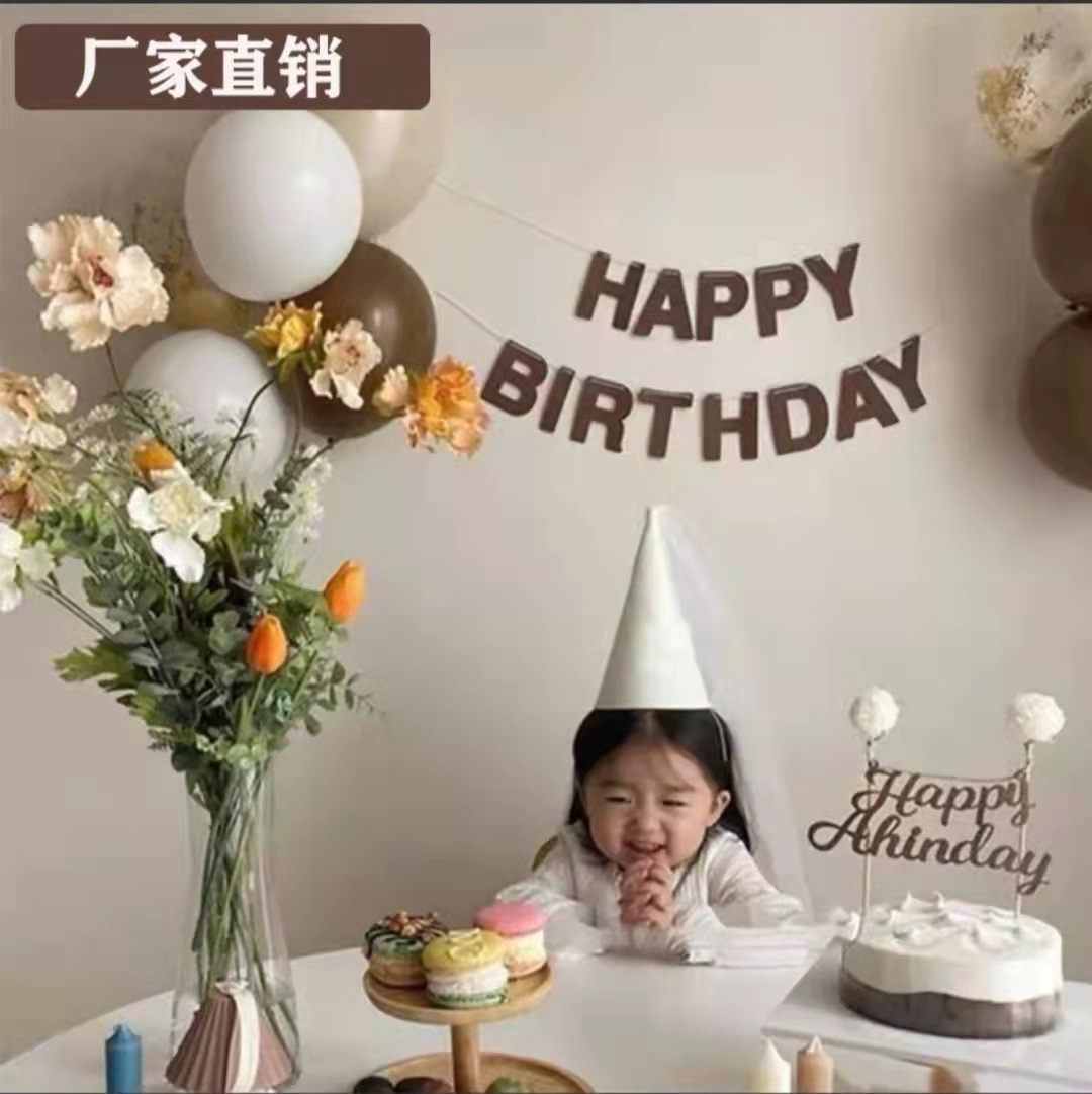 Insコーヒー色誕生日おめでとうアルファベット旗赤ちゃん満月誕生日装飾百日花