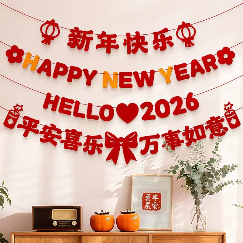 2026马年新年快乐春节装饰品场景布置氛围拉旗元旦幼儿园挂件拉花