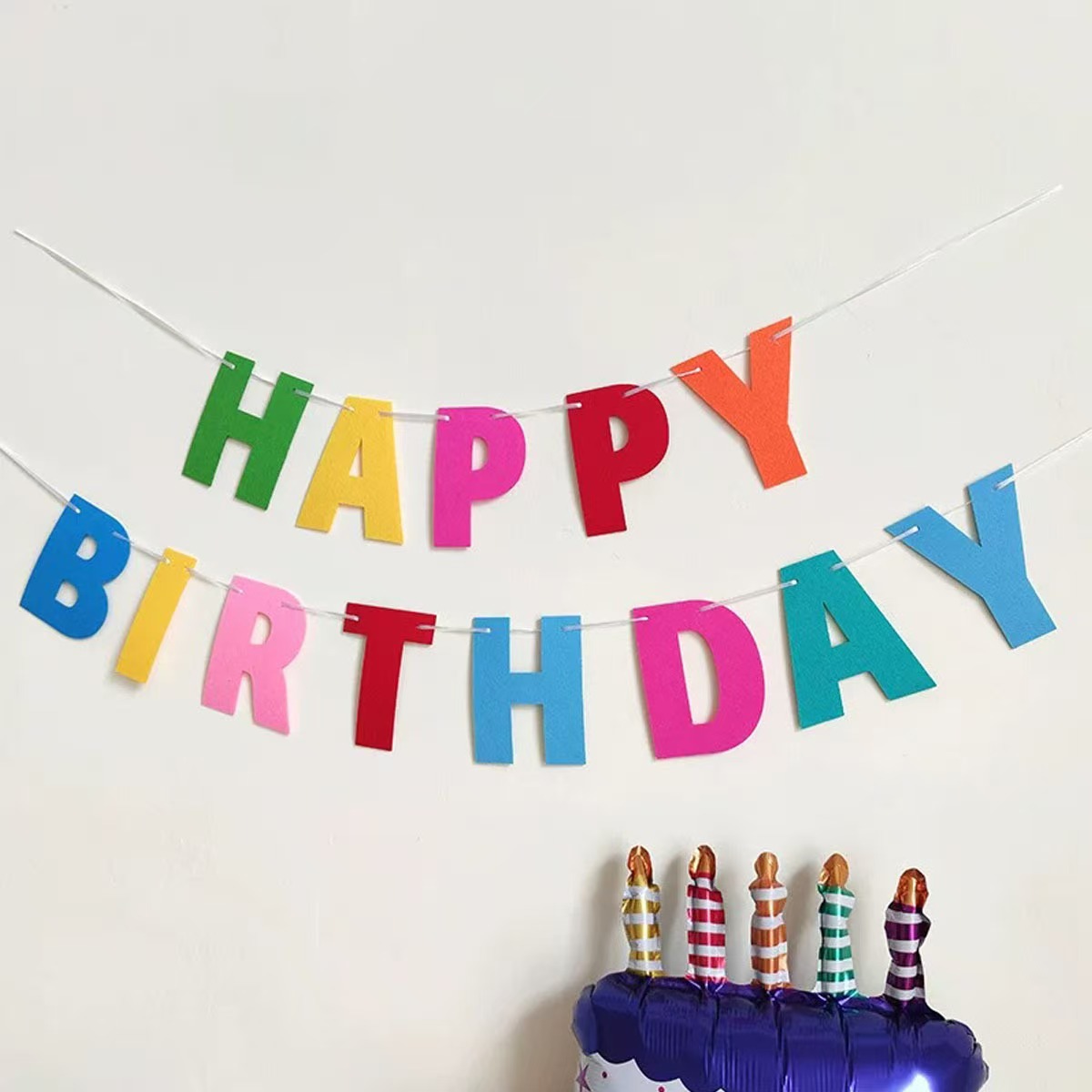 カラーアルファベット旗不織布拉花ins風韓国式子供誕生日パーティーの背景壁に飾られています。