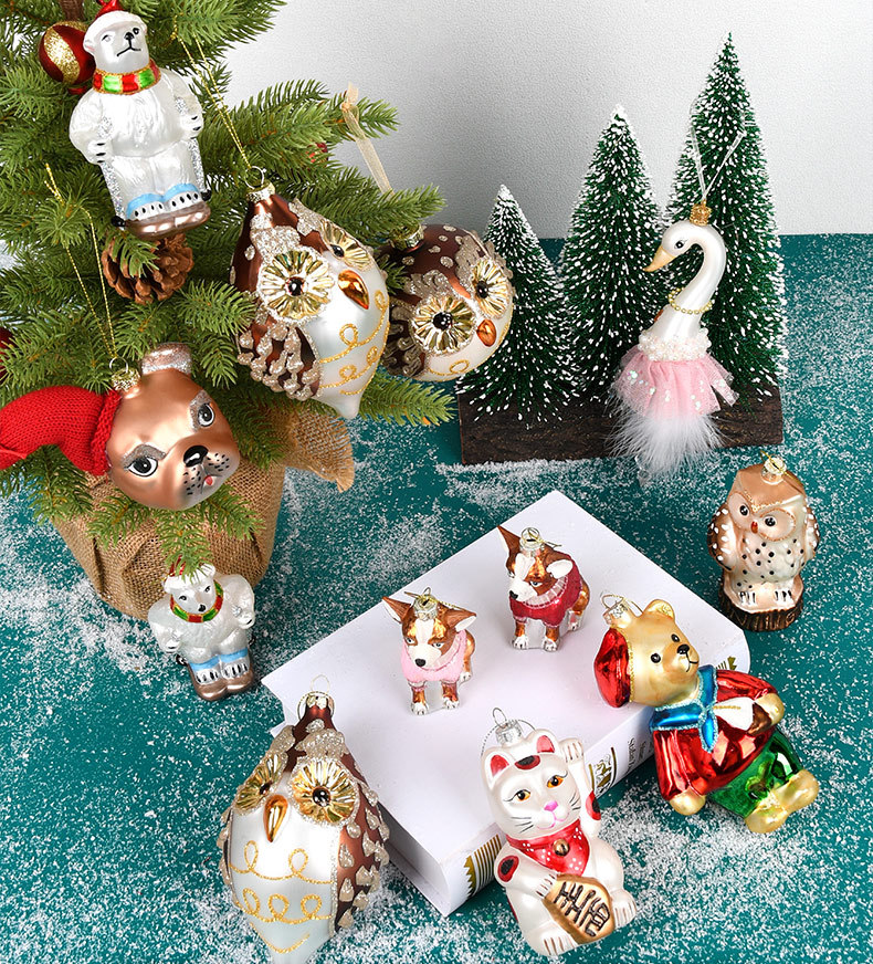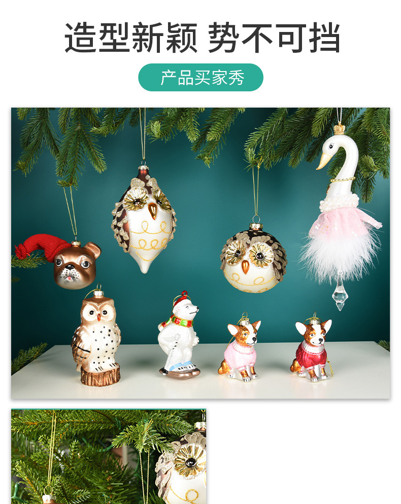 クリスマス装飾ガラス彩色フクロウ白鳥子犬スタイルクリエイティブペンダントクリスマスツリー配置ベアストラップ