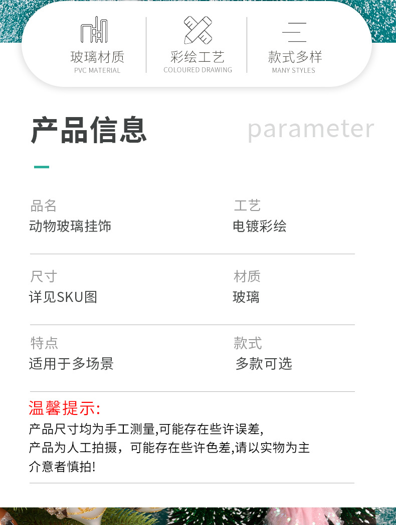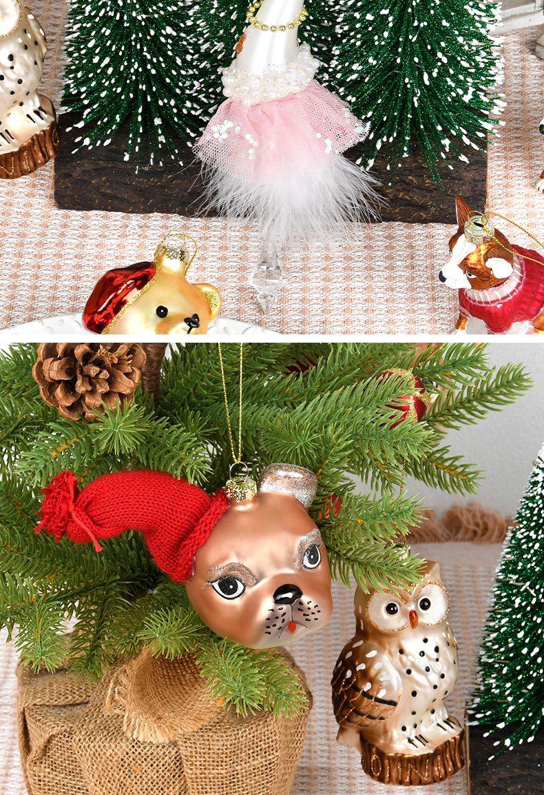 クリスマス装飾品クリエイティブガラス彩色熊子犬フクロウ動物小ペンダント雰囲気シーン配置