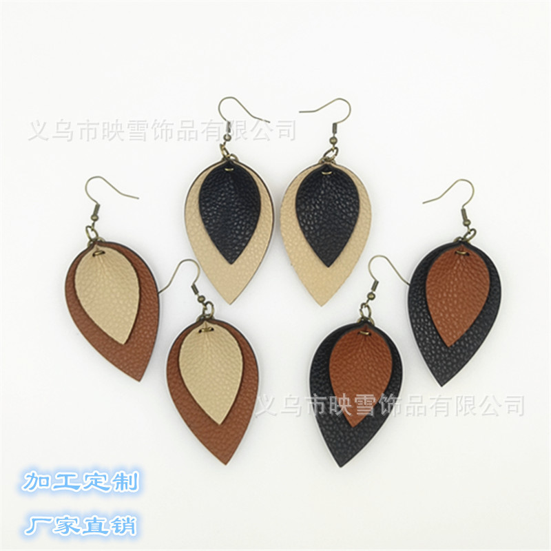 欧米の国境を越えたアマゾンの夏のイヤリングはシンプルでファッション的な多層皮革の組み合わせ構造の耳のフックのイヤリングです。