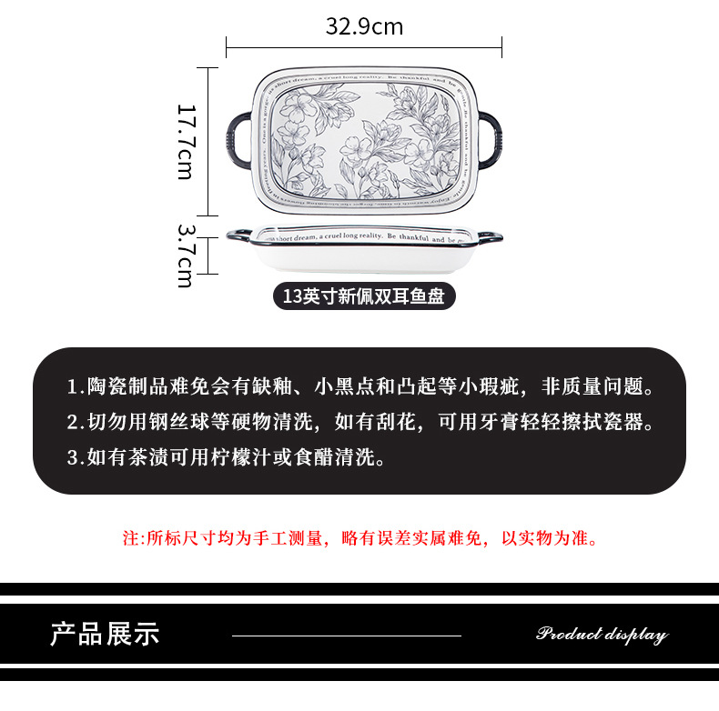13英寸新佩长方鱼盘 (36只一箱) 9英寸新佩双耳方盘(48只一箱)
