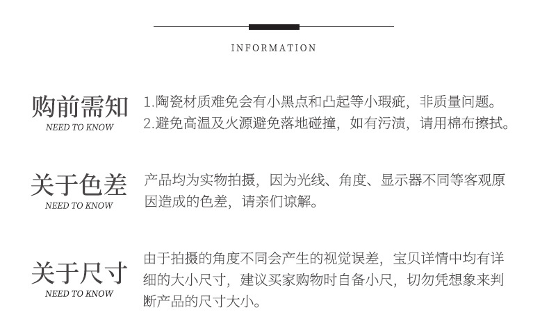 (1)新品上市,付款后一般1-3天左右发货,有大量现货的一般当天发货,若刚好产品无现货,陶瓷生产、包装需一段周期,3天发货,望您谅解。