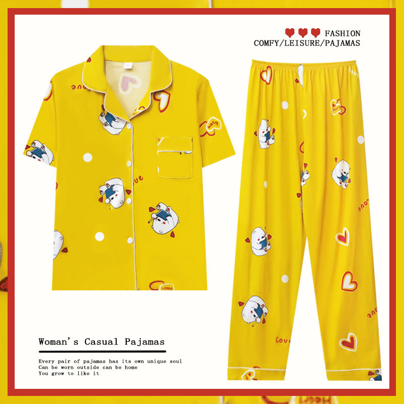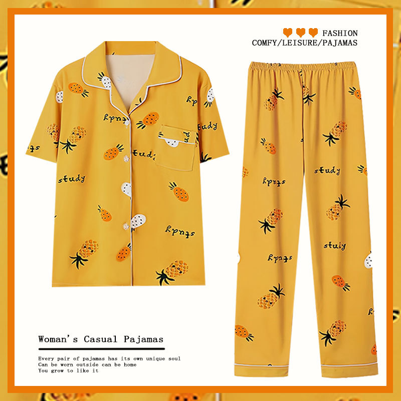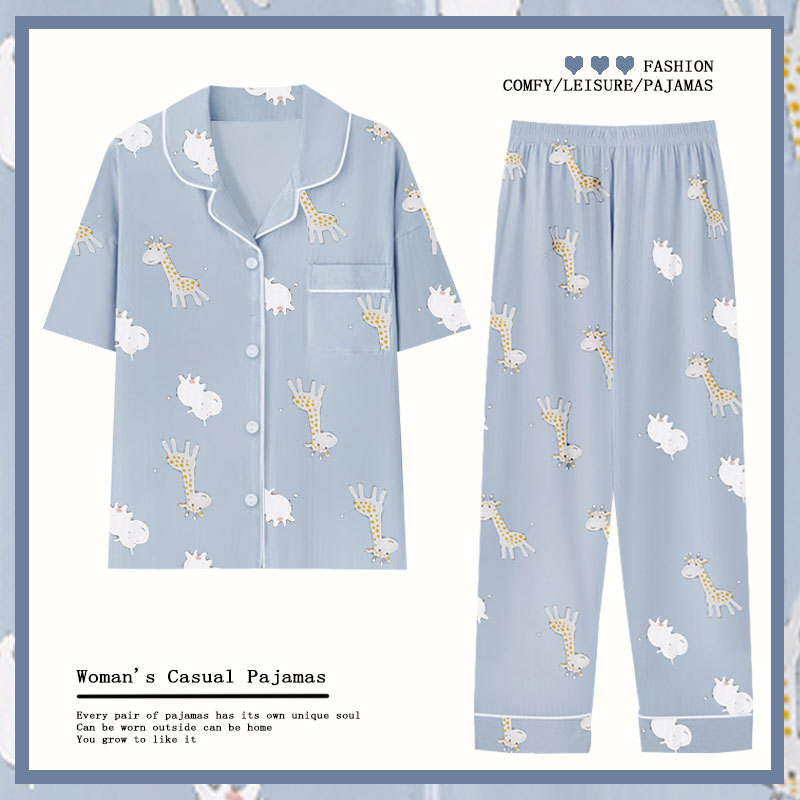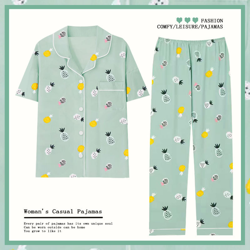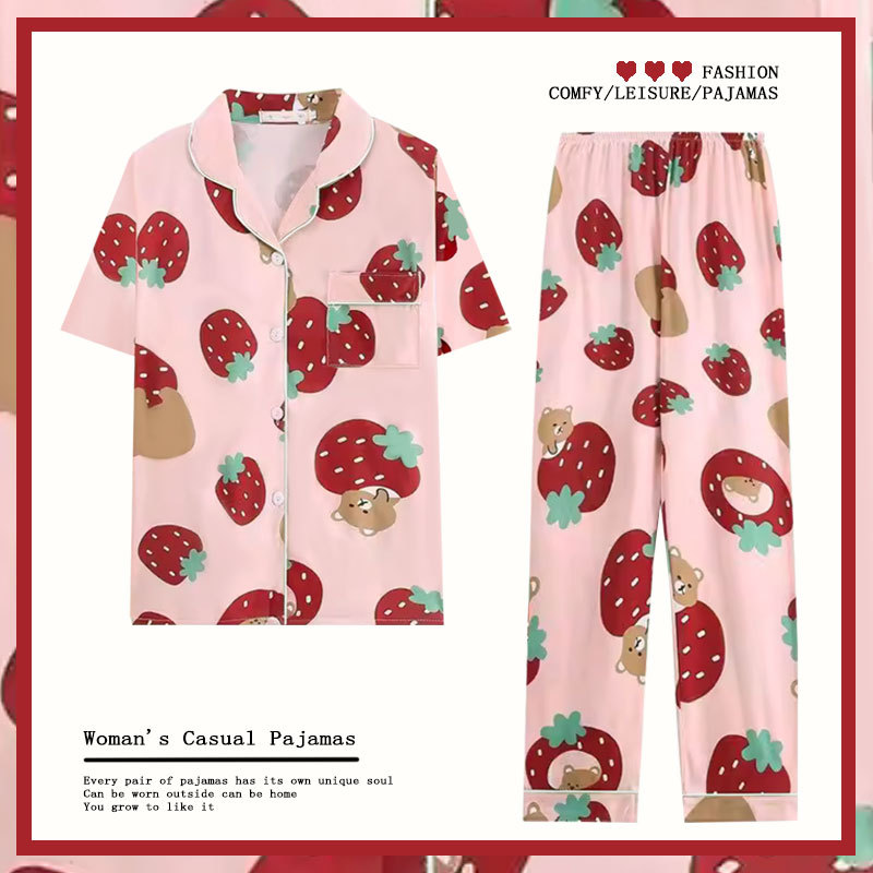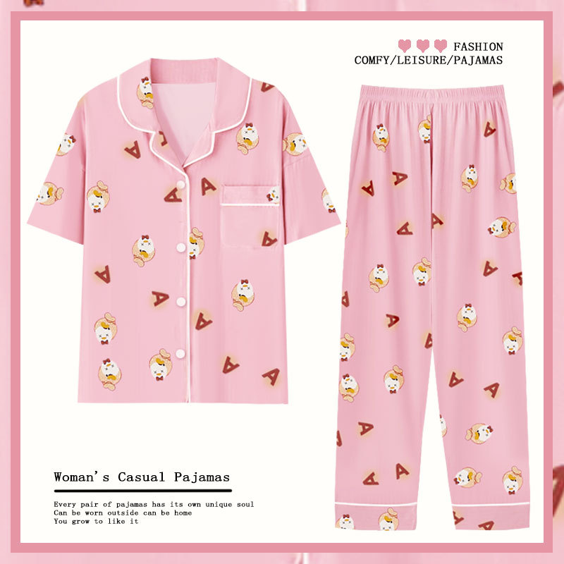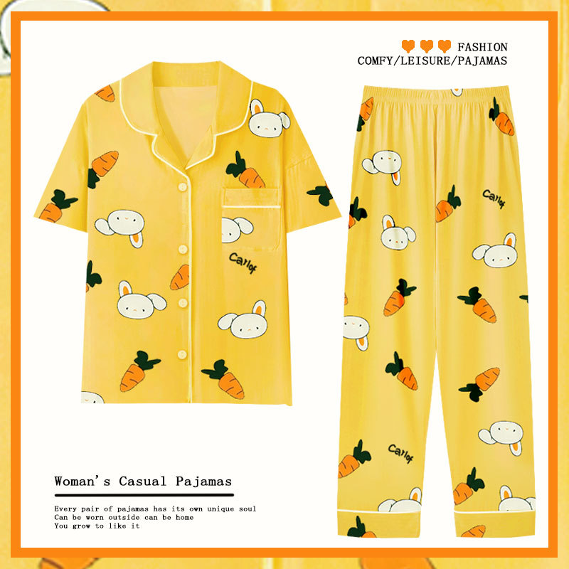 クロスボーダー卸売りの新型パジャマ女性半袖長ズボンのカーディガンは、漫画大根の家庭服セットを着ることができる