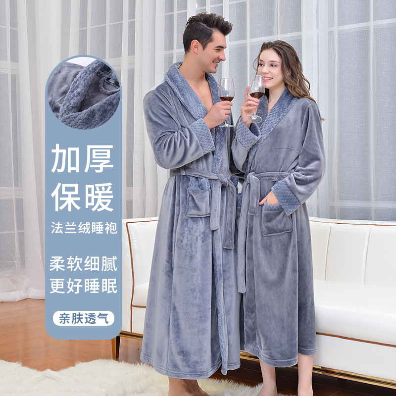 クロスボーダー秋と冬の女性用ロングフランネルナイトガウン、ベルベットと厚みのあるホテルバスローブ、フランネルプラスサイズのカップルバスローブ