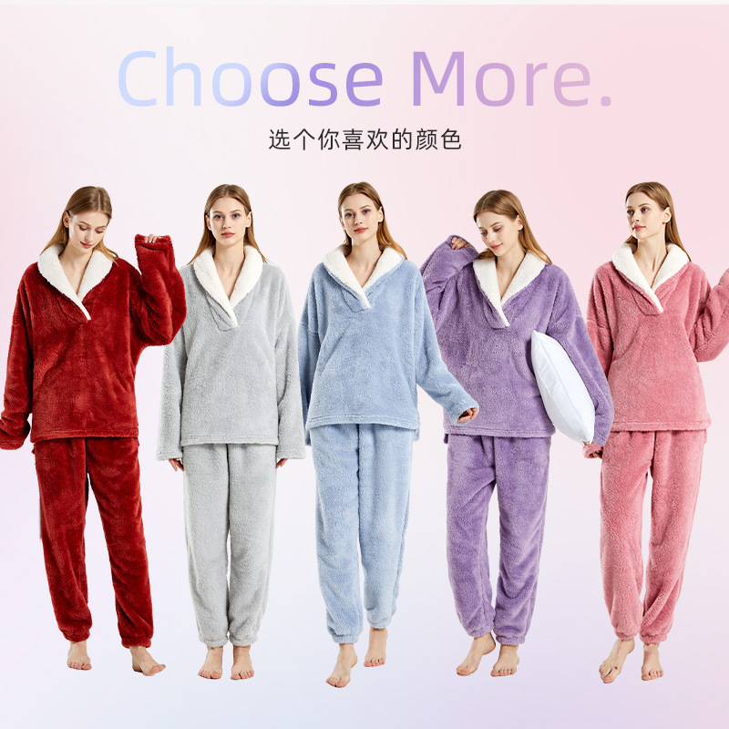クロスボーダー冬パジャマ女性サンゴフリースパジャマ肥厚プラスサイズホームウェア女性ターンダウン襟ルーズレディースパジャマセット