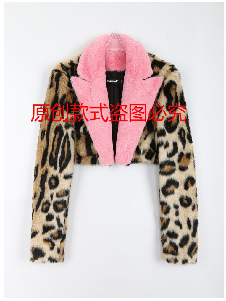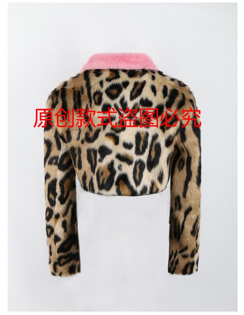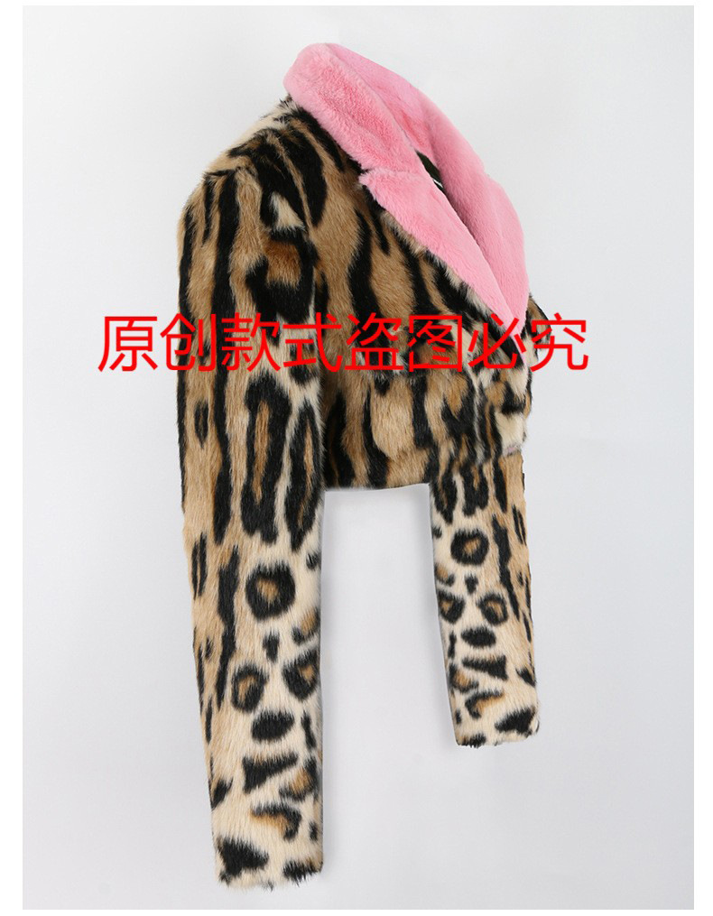 毛皮のコートをまねる女装欧米の外国貿易で起爆されたヒョウ柄秋冬ピンクの襟が保温された短い毛皮のコートをまねる