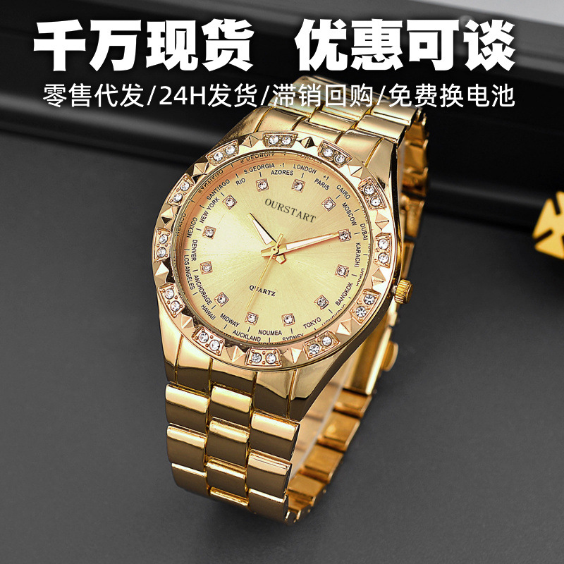 メーカー現物男性腕時計卸売り鋼帯石英時計ドリル高級感男性時計クロスボーダー腕時計男