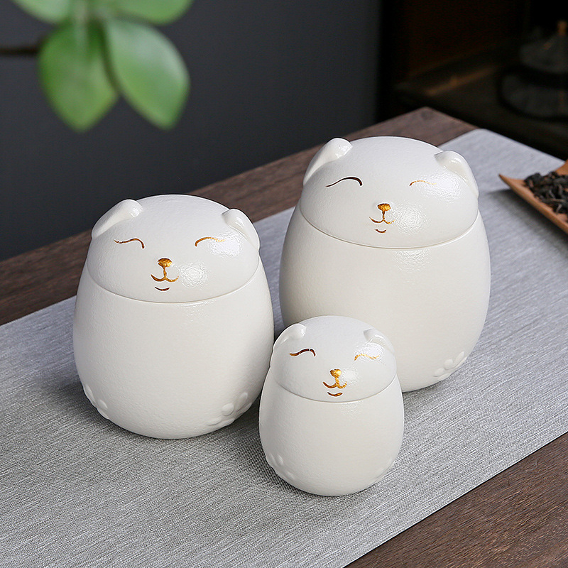 越境ペット陶磁器缶招き猫創意事務置物陶磁器密封貯蔵缶防湿缶茶葉缶バッチ