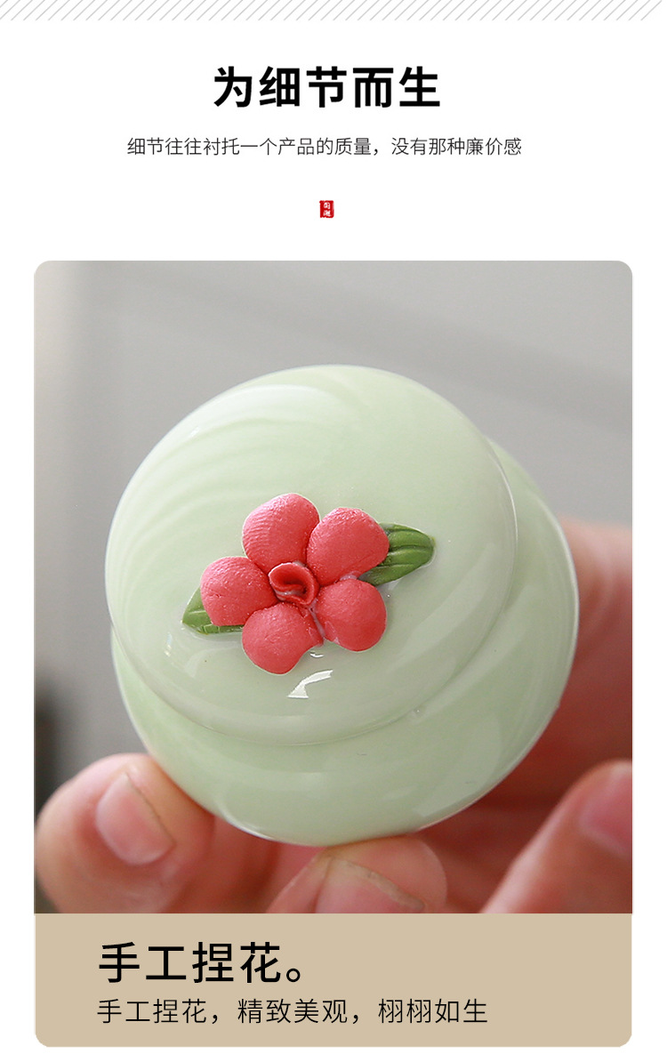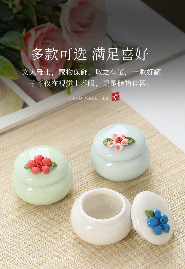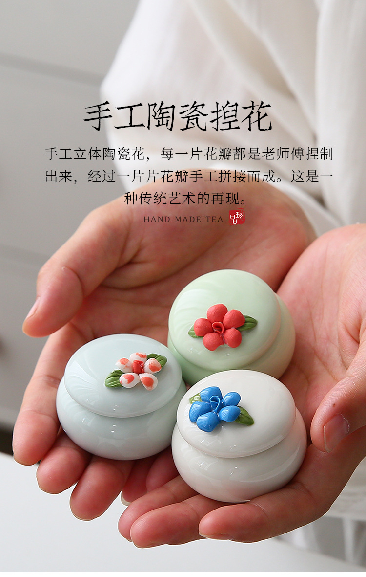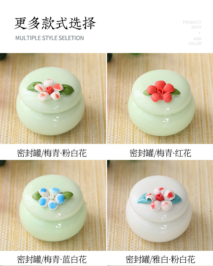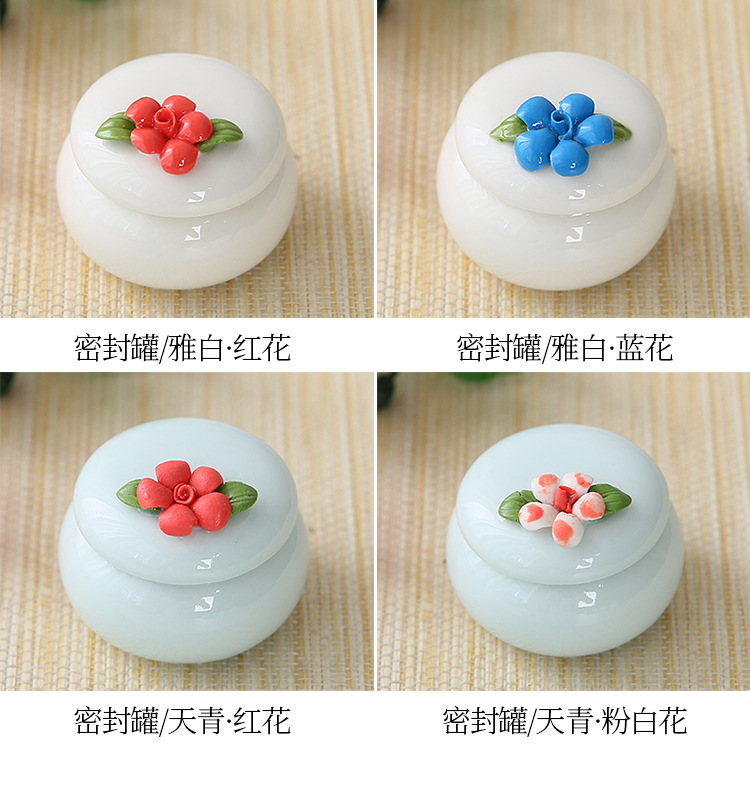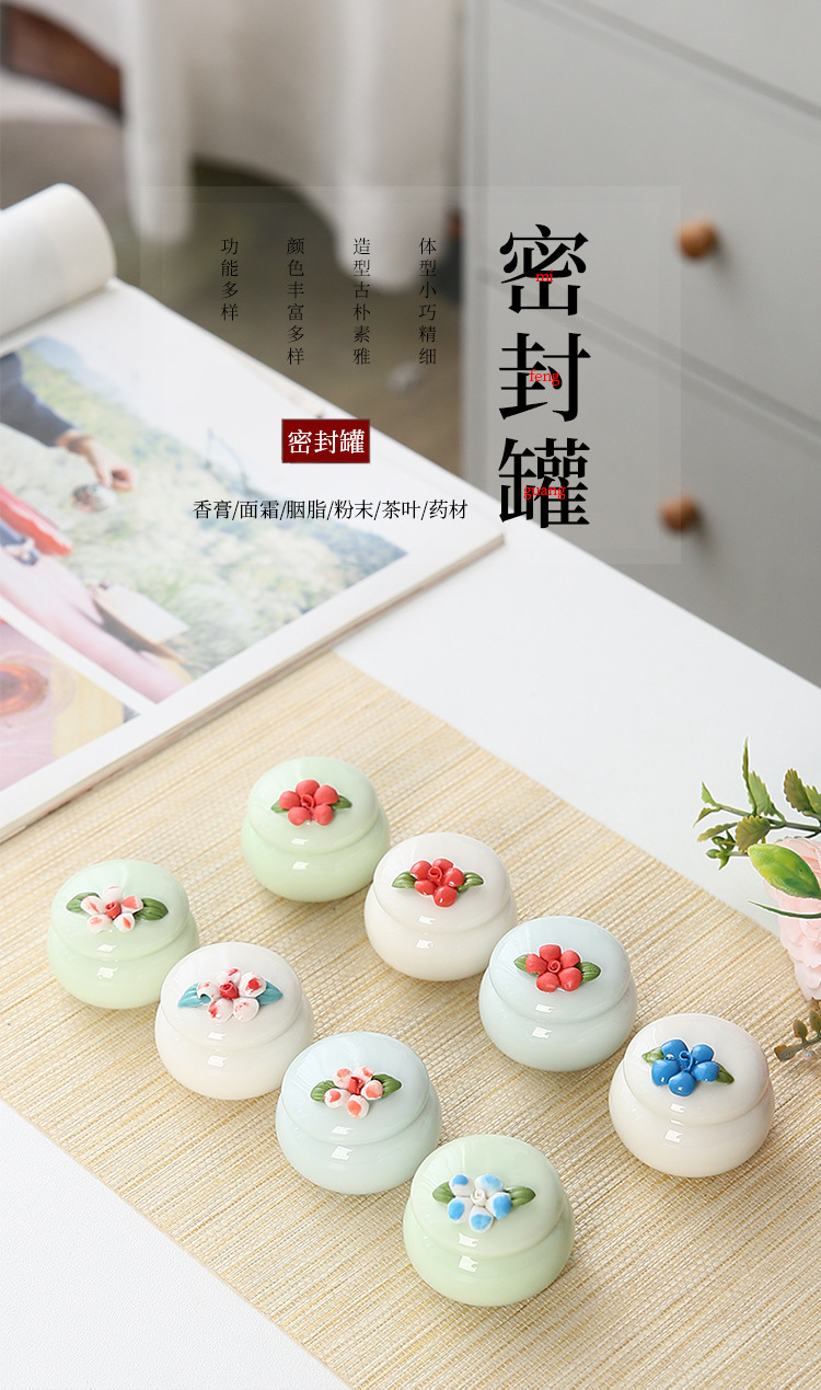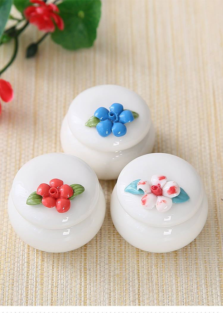新しい手つまみ花茶葉缶陶磁器香膏缶ミニ古風紅箱クリーム口紅密封小磁器瓶