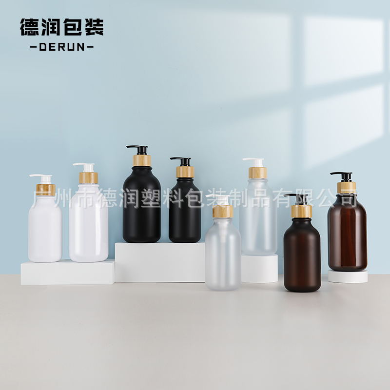 500ml竹木押しローションボトルシャンプー入浴剤分注ボトル300mlフロストプラスチック洗浄ボトル