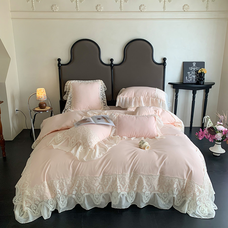 フレンチクリームプリンセス风レース水洗いコットン四点セット布団カバーシーツ寝具高级感少女