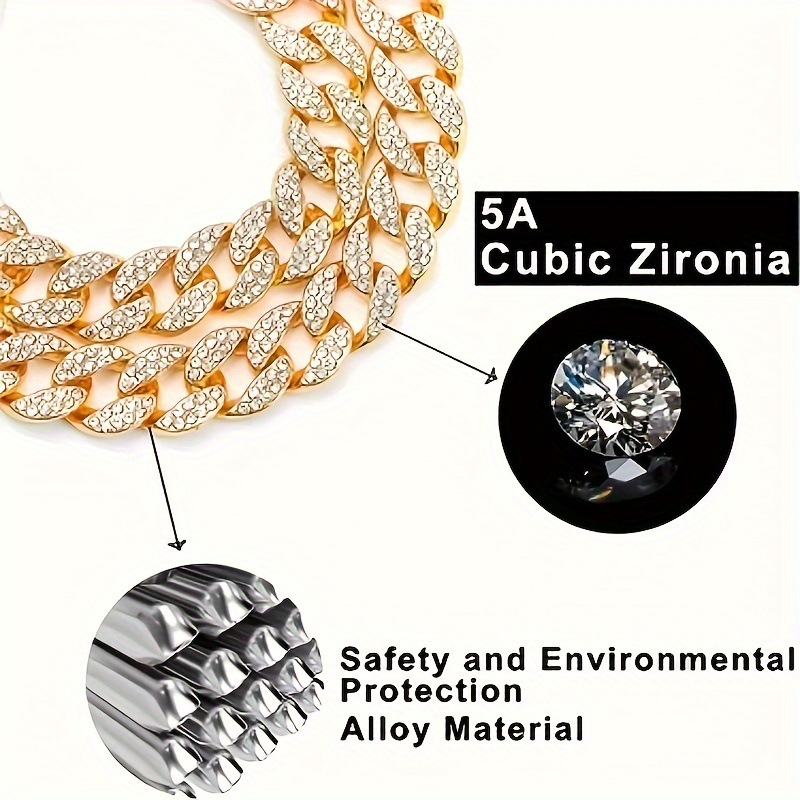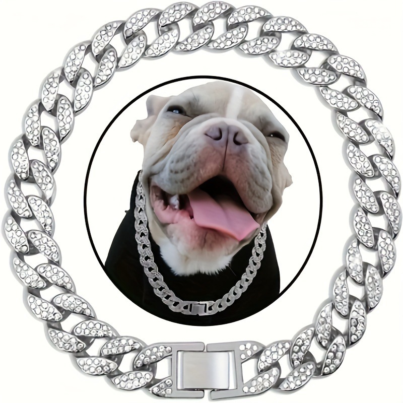 新しいペット用犬の首輪ネックレス、ダイヤモンドがちりばめられたキューバチェーン、犬用リード、ペット用猫用ロックバックル、ゴールドとシルバーの卸売