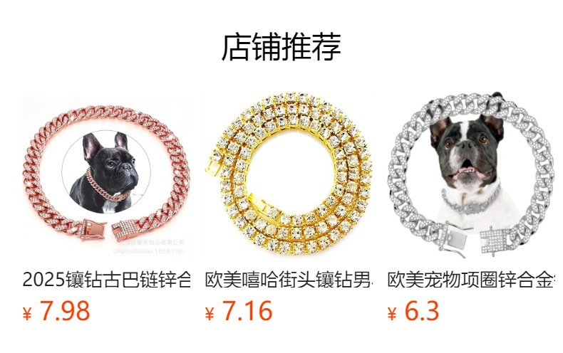 2025镶钻古巴链锌合金宠物饰品大金项链项圈小猫装饰链子小猫狗链