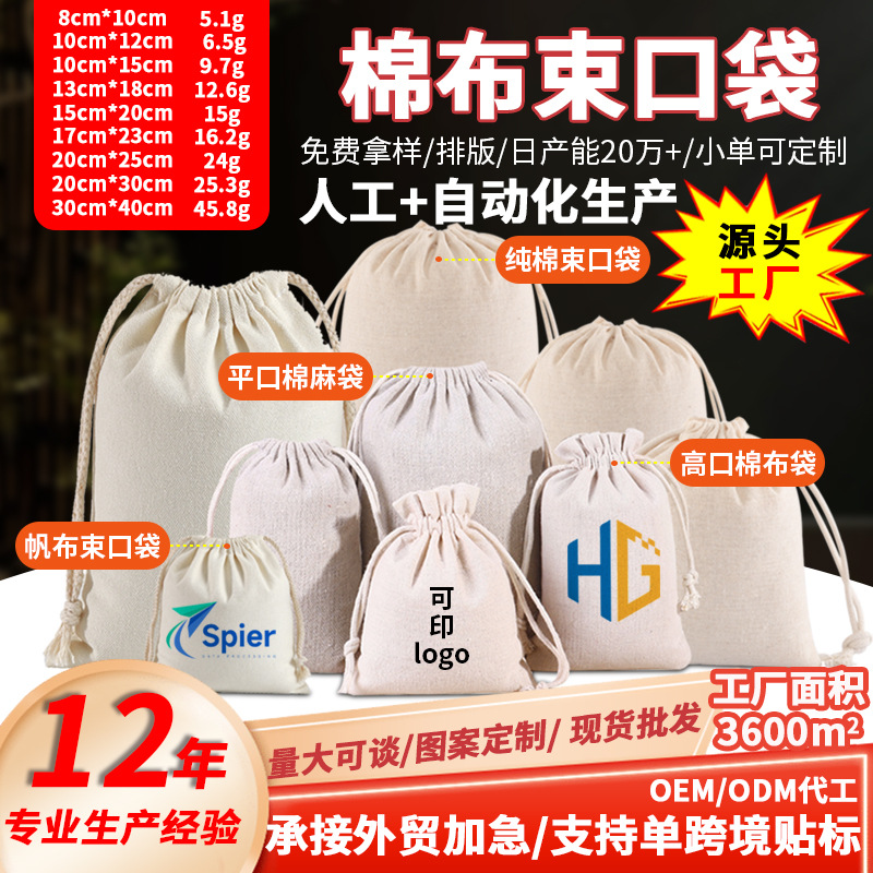 人字斜纹棉麻抽绳束口袋商务礼品包装棉帆布袋手工肥皂亚麻布袋子