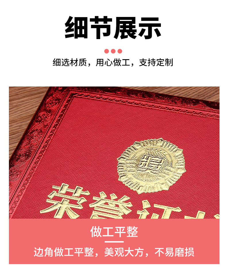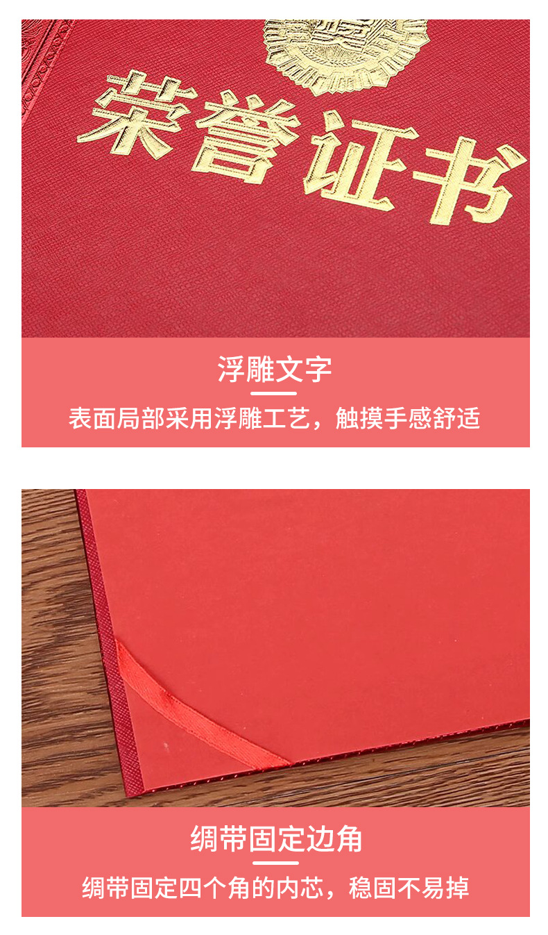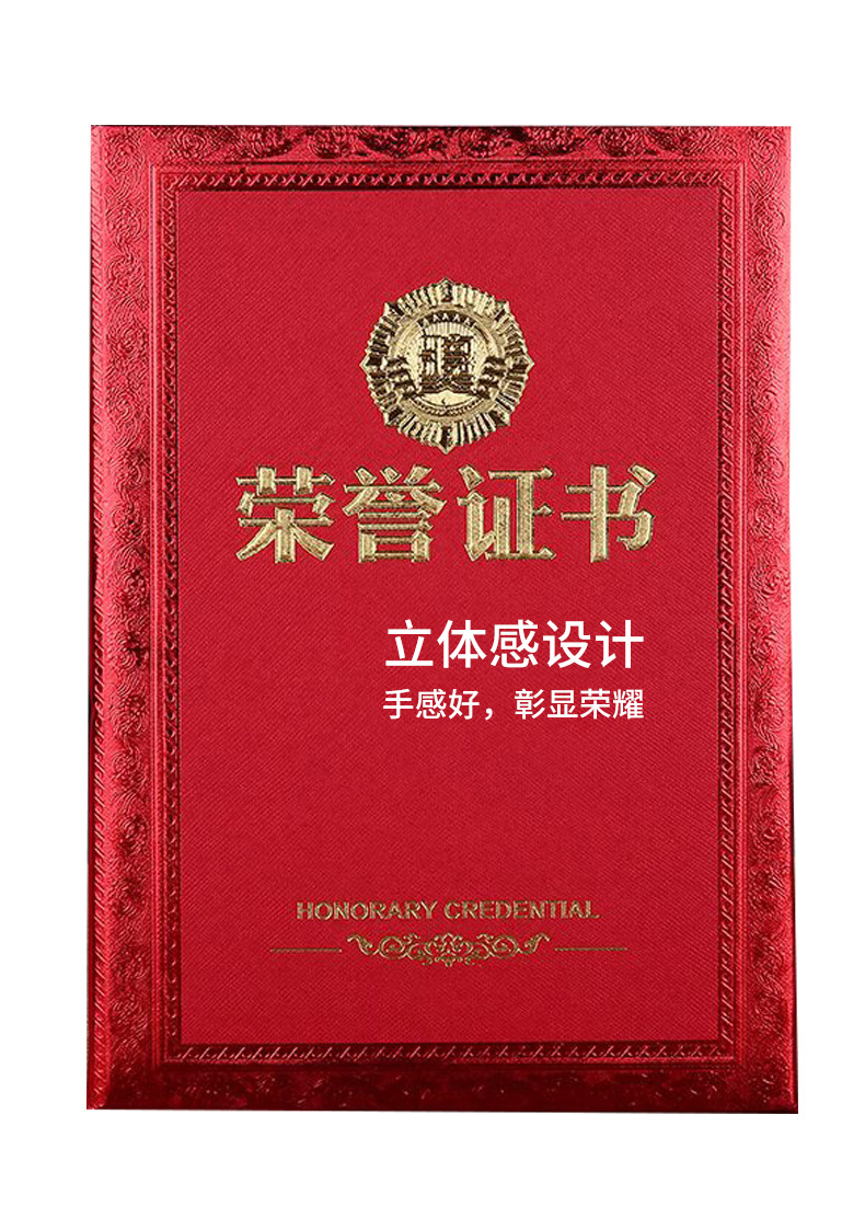 名誉証明書エンボス加工表紙、金箔押し模造革模様賞状証明書表紙、表彰卒業証明書表紙