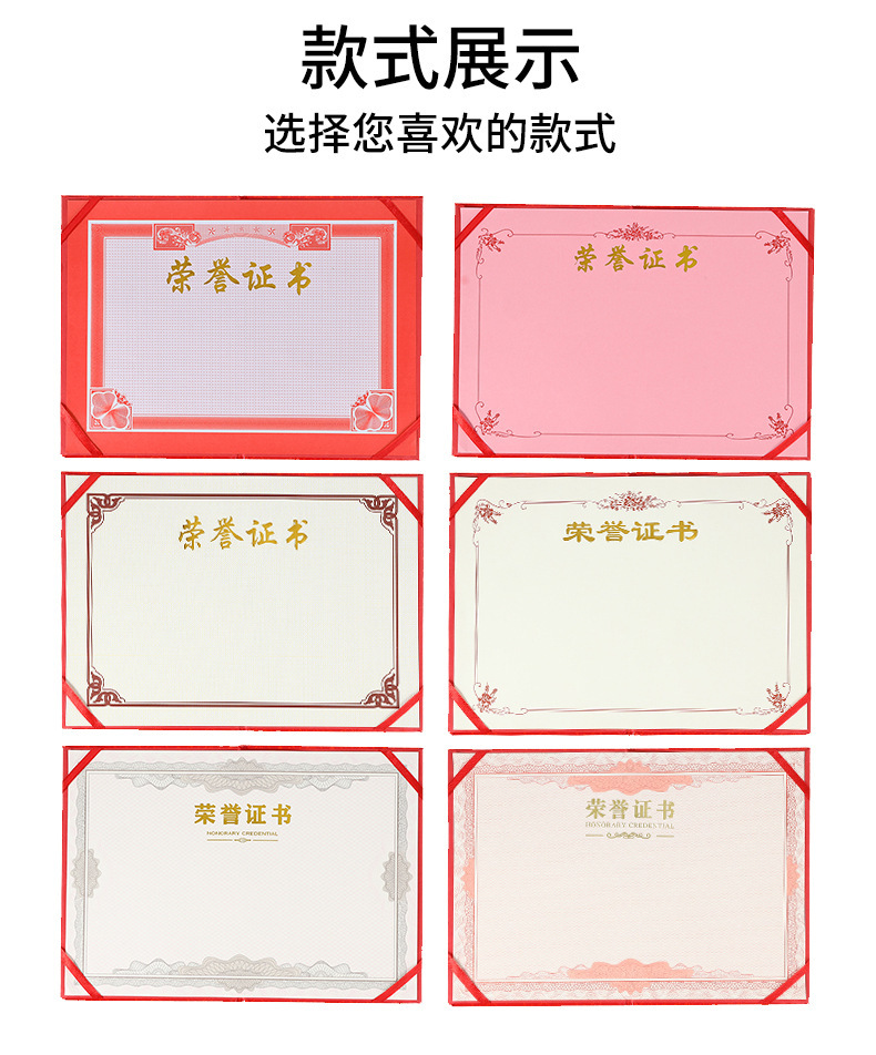 名誉証明書 片面A4証明書表紙 聘書賞証明書インナーコア 修了証証明書証明書シェル