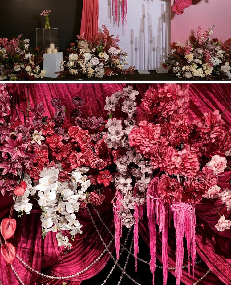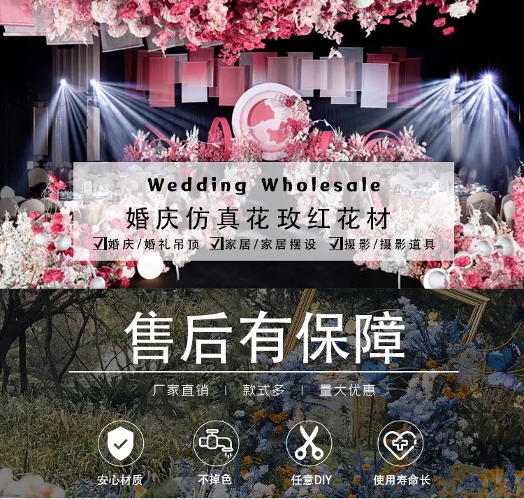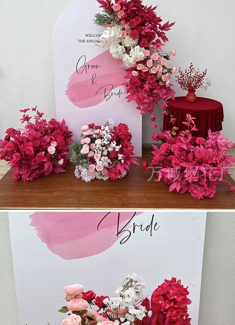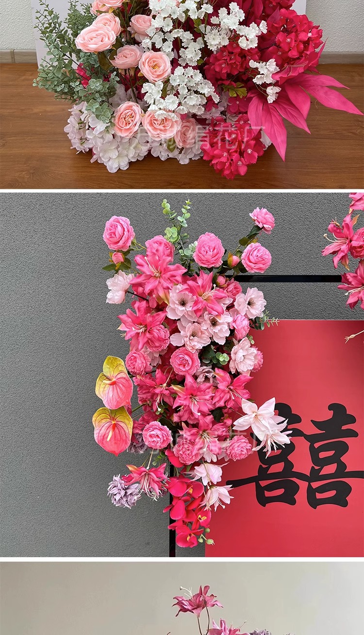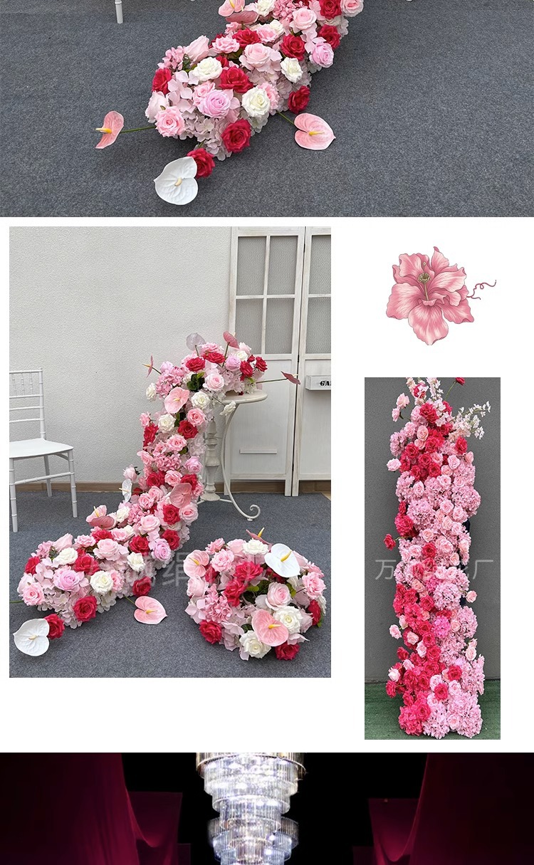 結婚式のシミュレーション花の花の材料のピンクの結婚祝いの手は花のホテルの造景の配置の偽の花の道を持って花のシミュレーションの花の卸売りを導きます。
