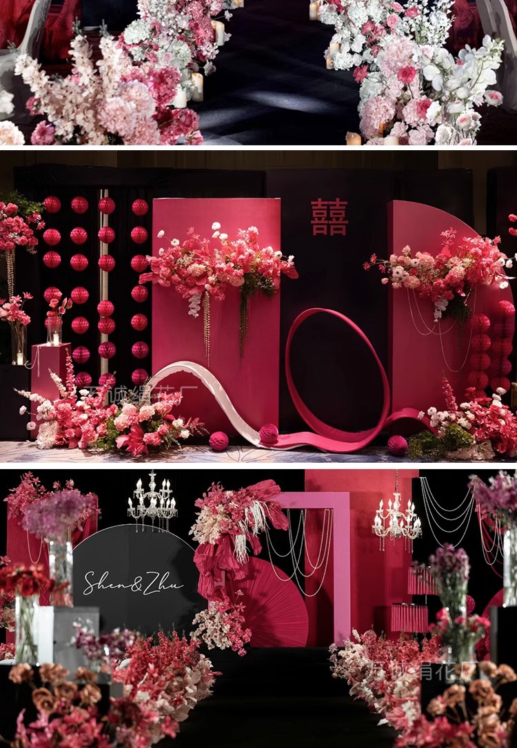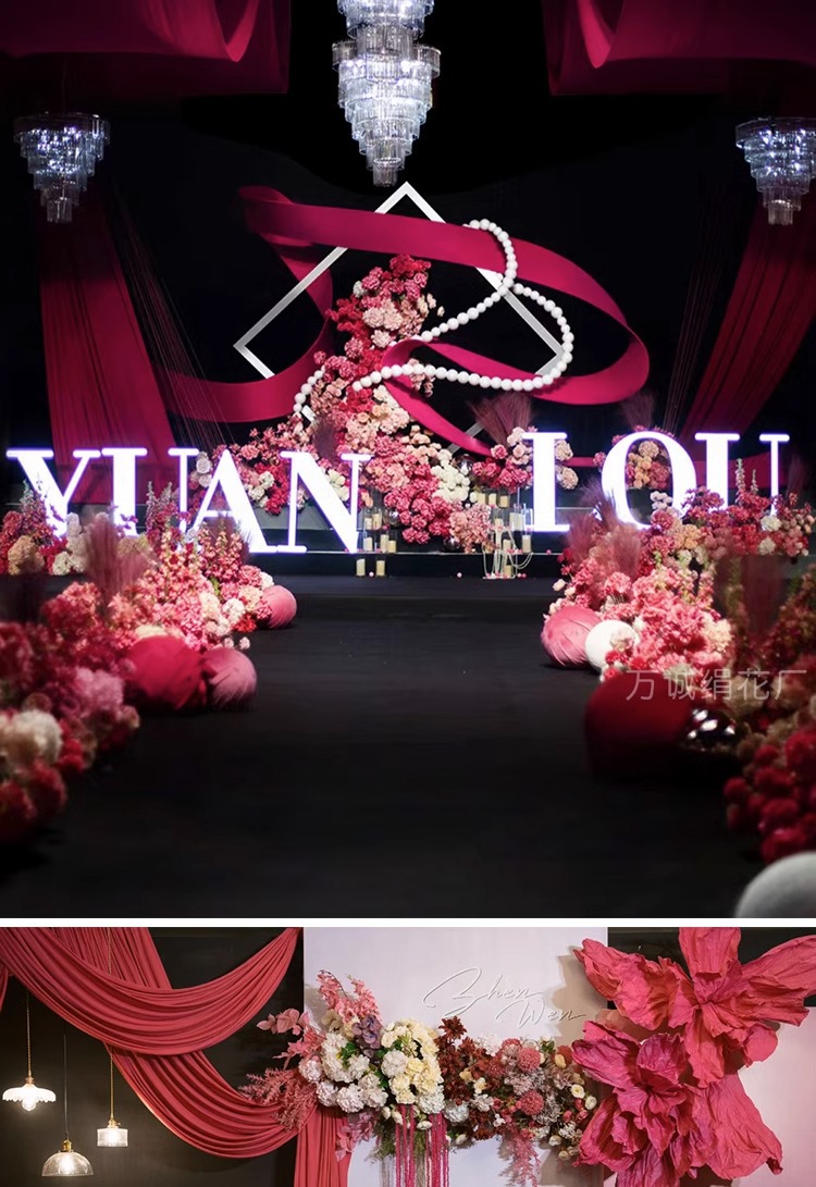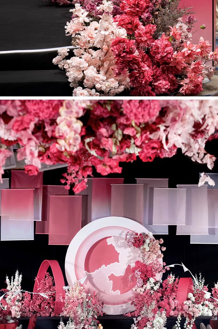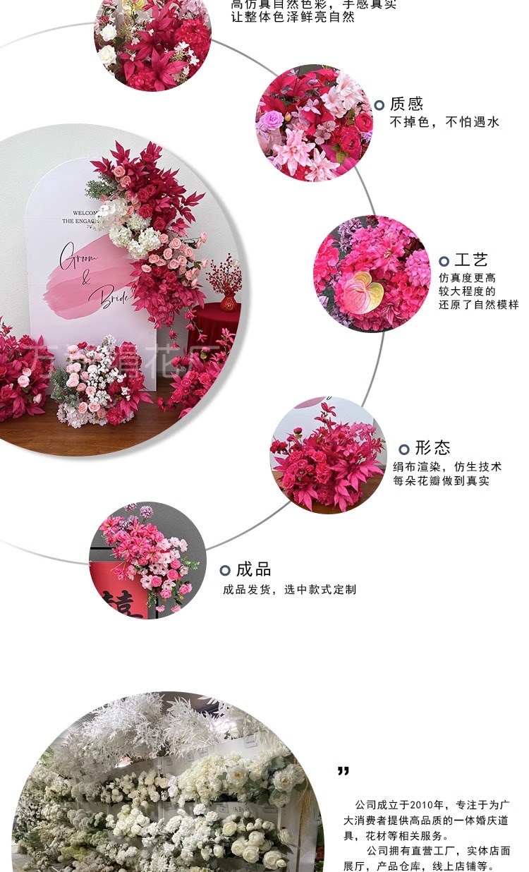 結婚式のシミュレーション花の花の材料のピンクの結婚祝いの手は花のホテルの造景の配置の偽の花の道を持って花のシミュレーションの花の卸売りを導きます。