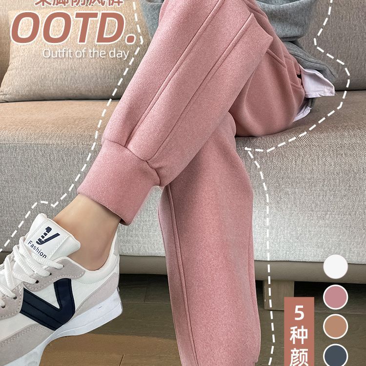 韓国版沐毛毛肌の柔らかいモチモチ秋冬保温防風長ズボンの多色足のカジュアルなズボンの女性のゆるい足首のズボン