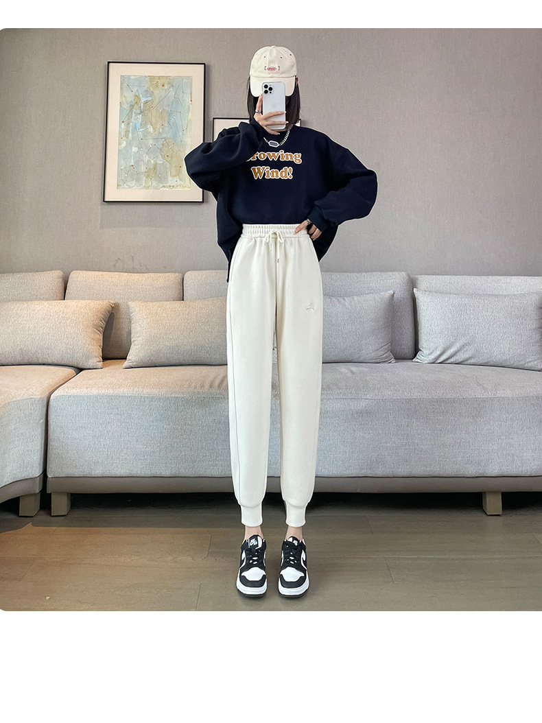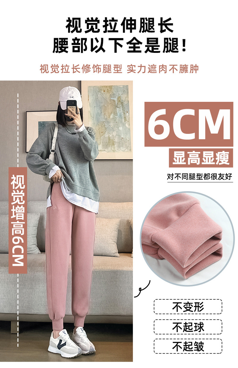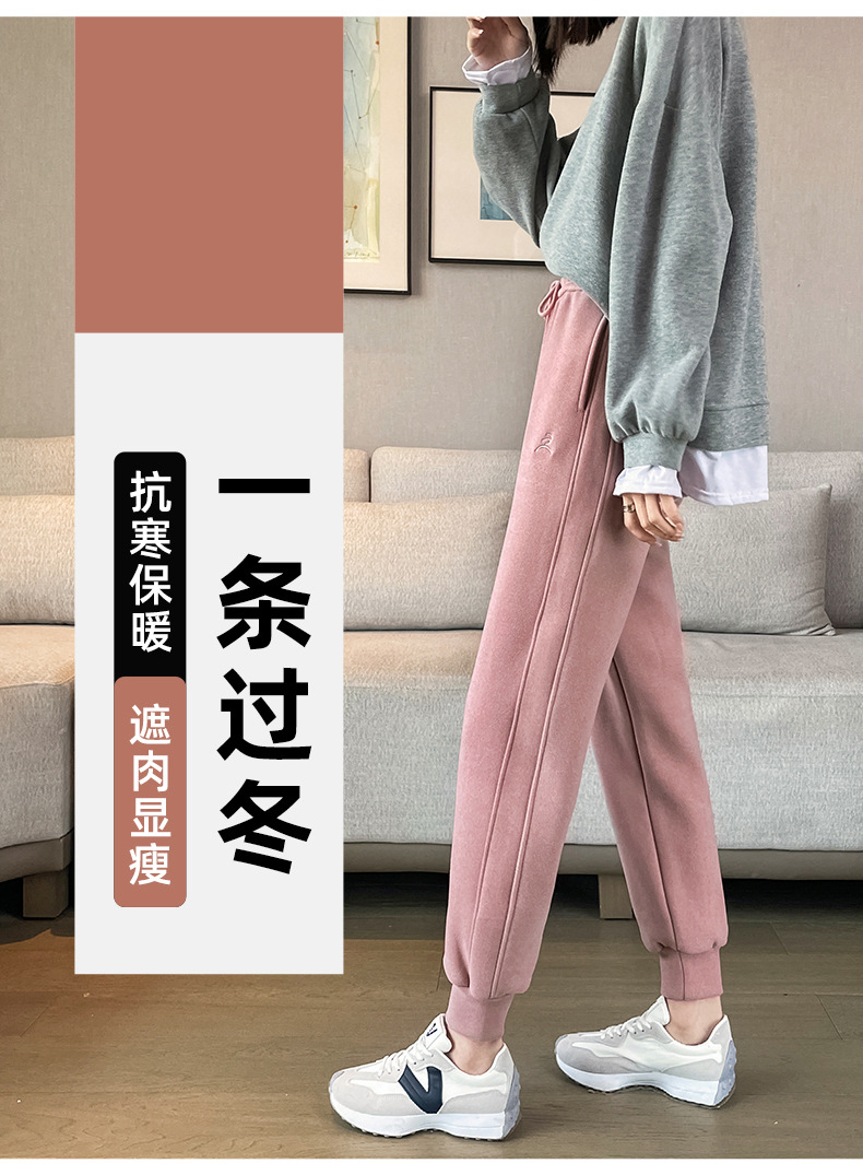 洋气华棉春秋宽松加绒卫裤女秋冬裤子加厚外穿新款显瘦束脚运动裤