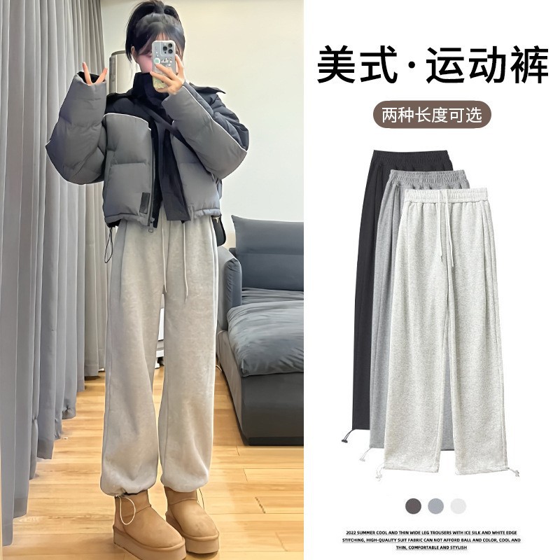 特厚羊羔绒阔腿裤女裤可调节脚口冬季保暖加绒加厚休闲裤运动卫裤