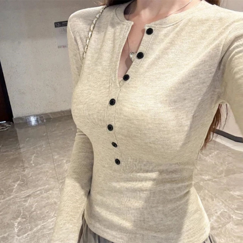 秋冬新款美式辣妹亨利领磨毛加绒上衣修身百搭半开领打底衫女内搭