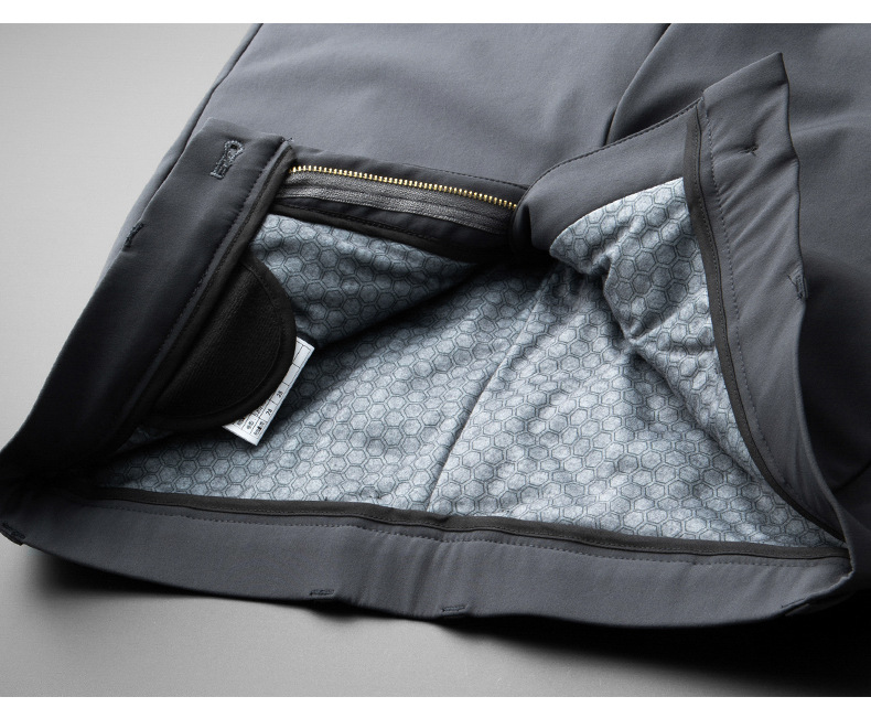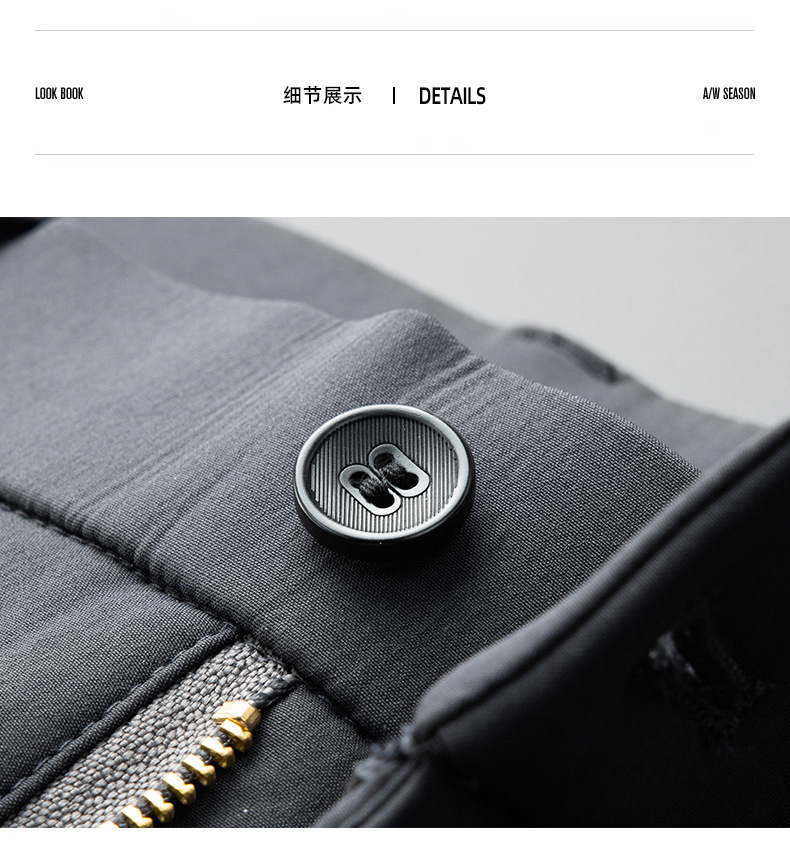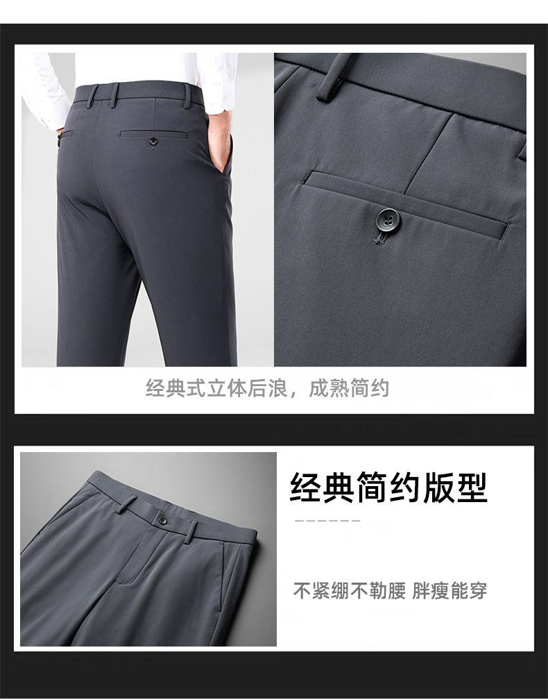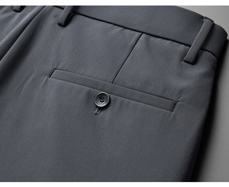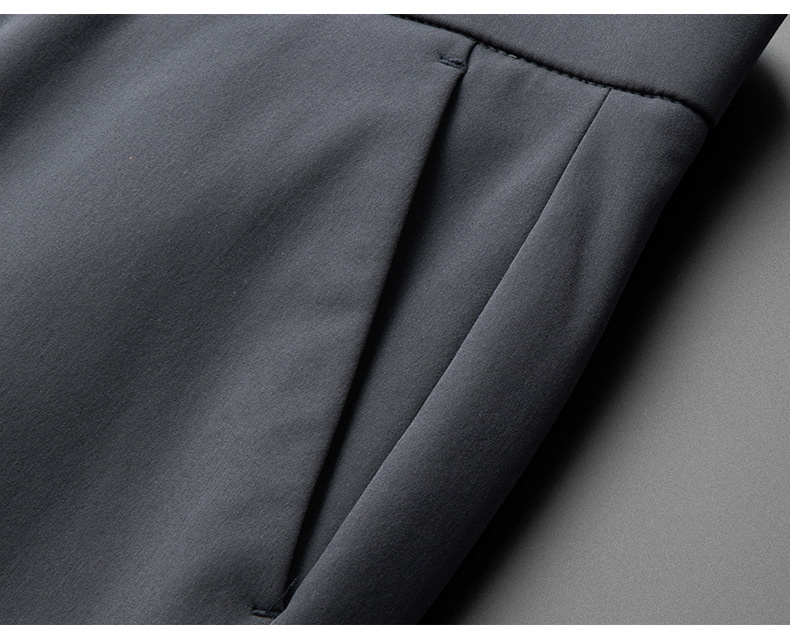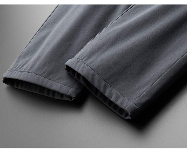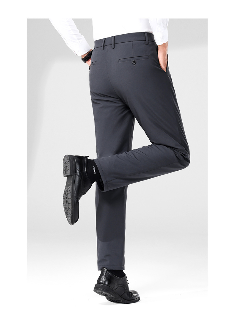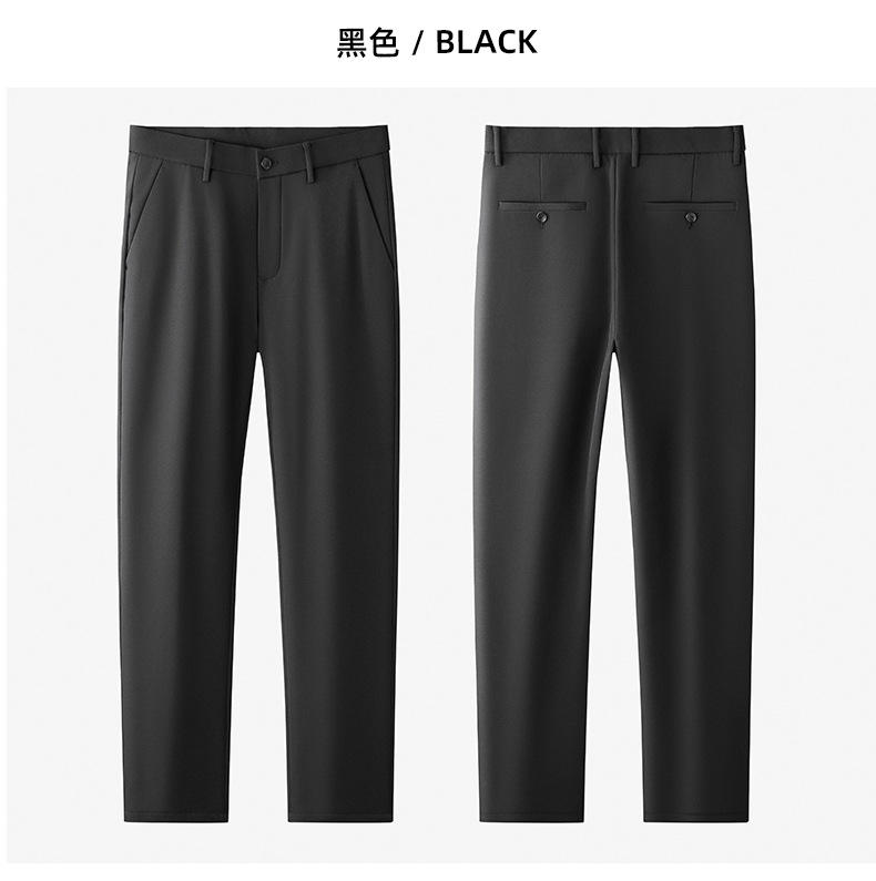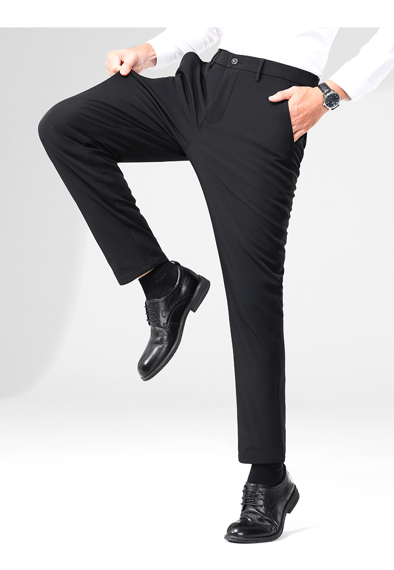 秋冬用ミルクシルク厚手カジュアルメンズパンツ、三防加工、裏起毛、メンズストレート、高伸縮性、防シワ、ドレープ感のあるビジネススーツパンツ