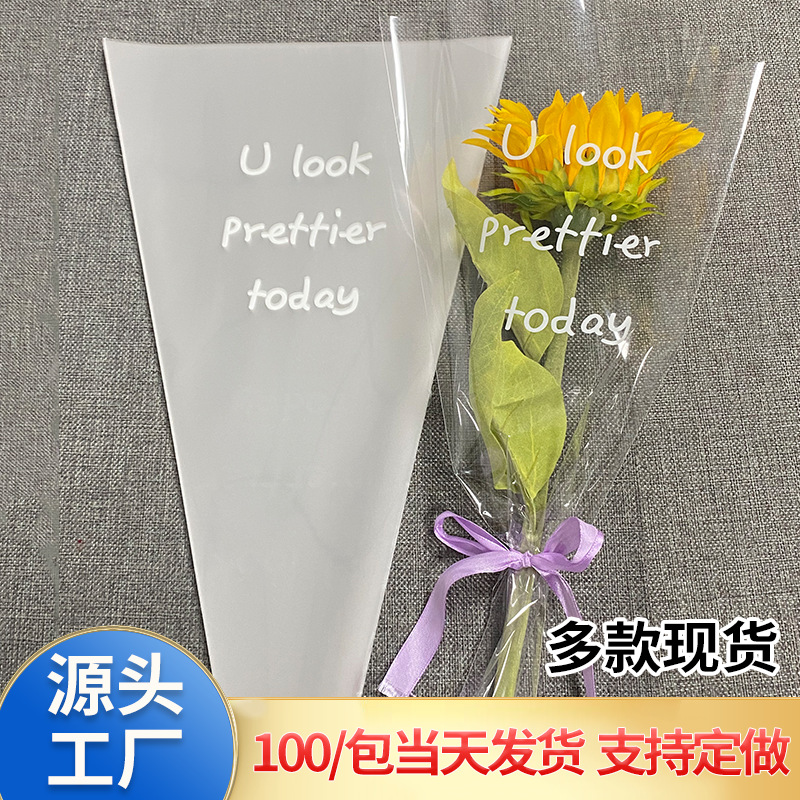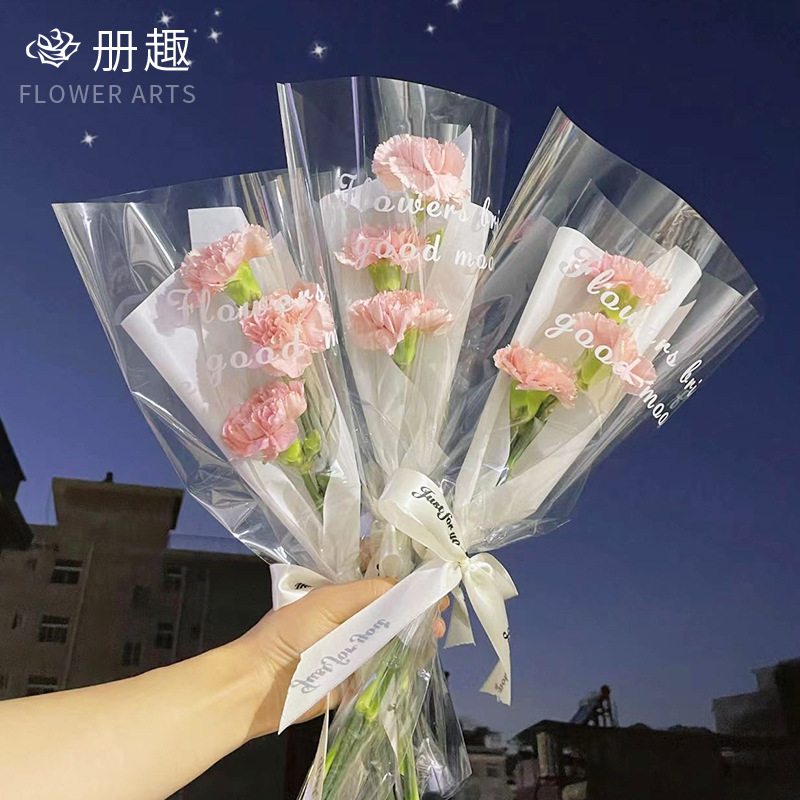 厚いOPP透明花包装袋白い文字薔薇満天星多本花束包装袋