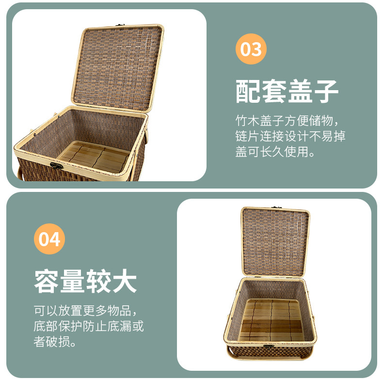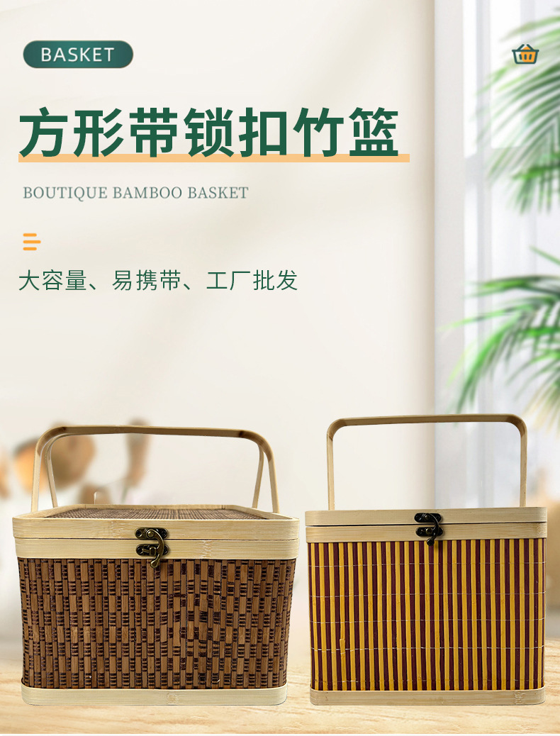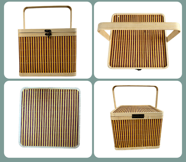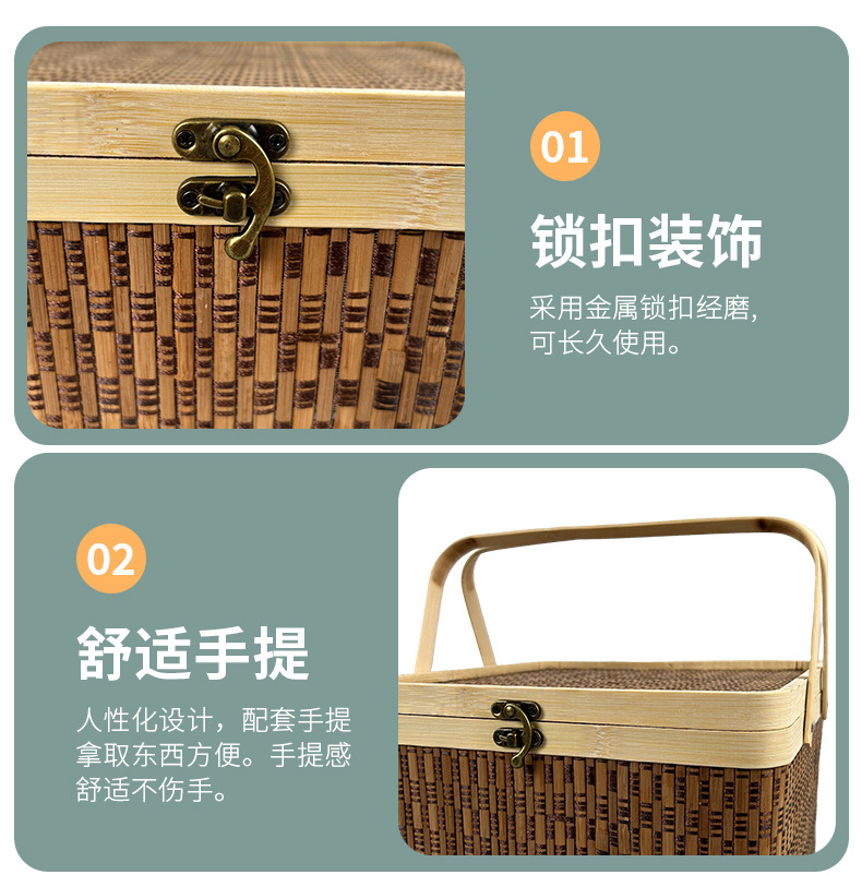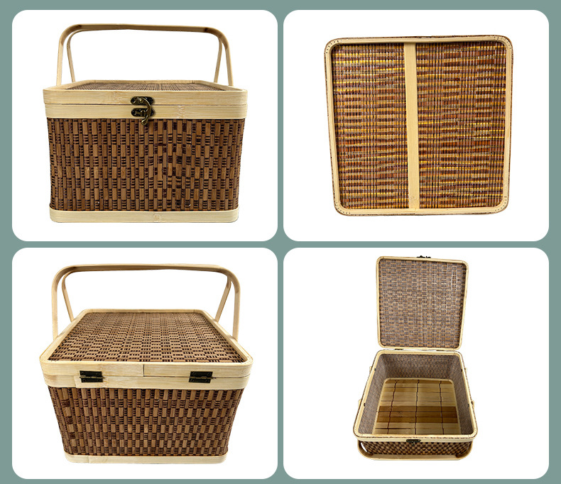 竹编包装手提竹篮中秋节装月饼坚果礼品盒水果送礼方形手提竹筐