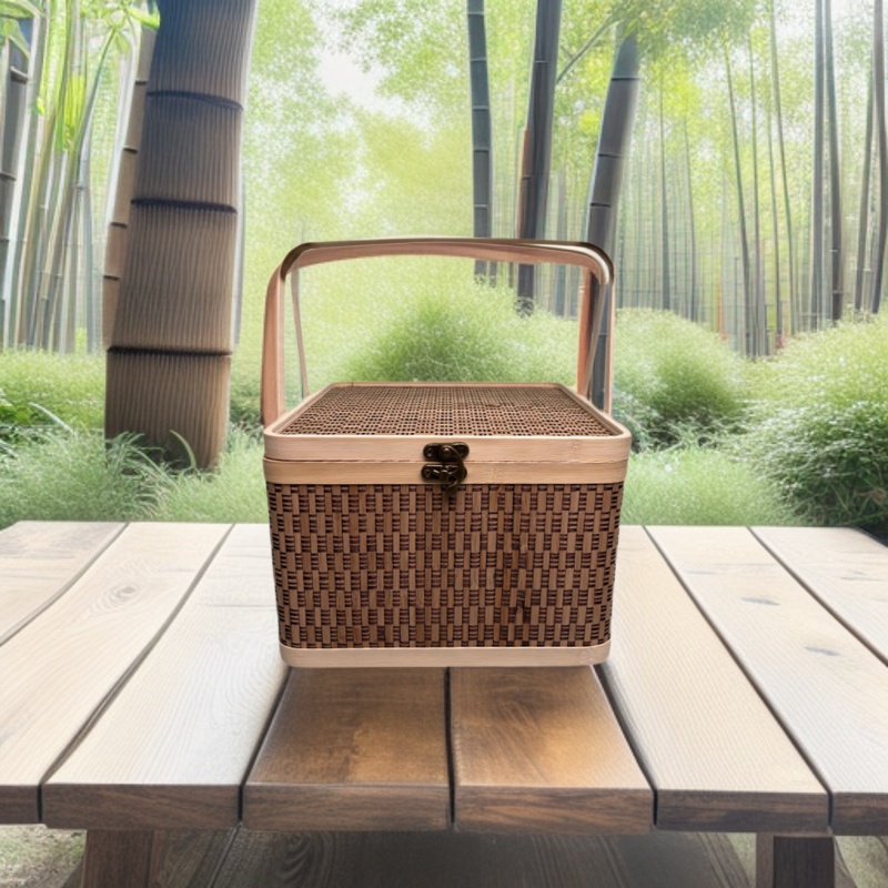 2025 中秋月餅ギフトボックス正方形ポータブル竹バスケットギフトボックス蓋とロック付き中国風の竹ギフトバスケット