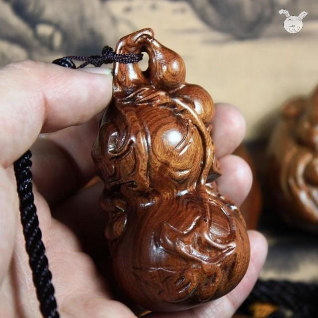 緑檀木の透かし彫りのヒョウタンの自動車のキーは男性の金の女性のウサギの年の本命の年を掛けて香の袋を飾ります。