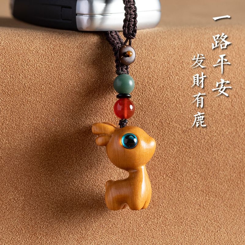 道中檀木小鹿自動車のキーホルダーは携帯電話のペンダントを掛けます。