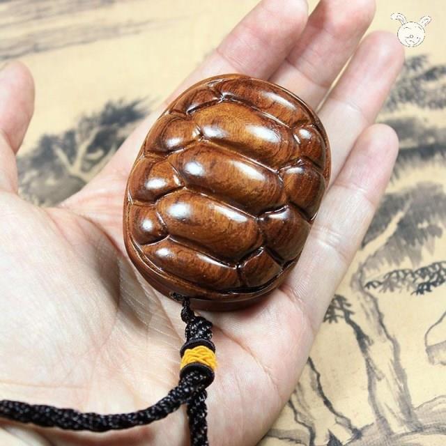 ラオスの黄色のナシの手の件の富甲の天下のカメの甲は木の彫刻を飾っておもちゃのアクセサリを持って黒い縄に送ります。