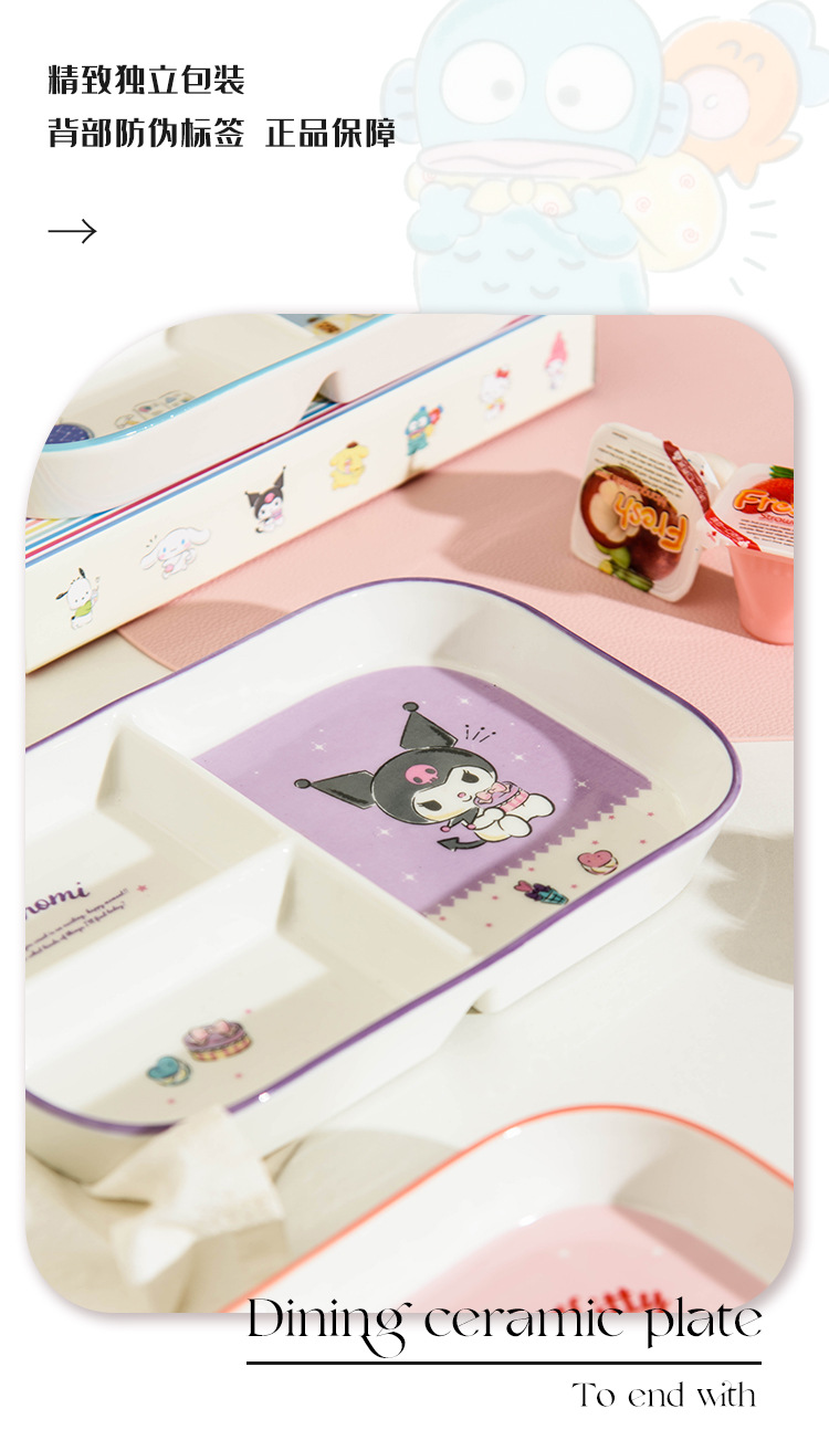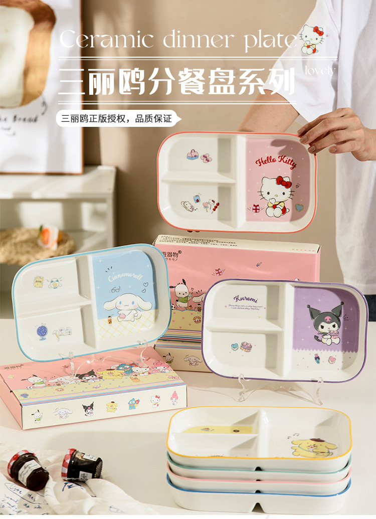 サンリオ陶磁分格食皿ハローキティクロミオ美顔値食器かわいい漫画仕切り皿