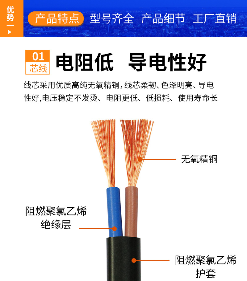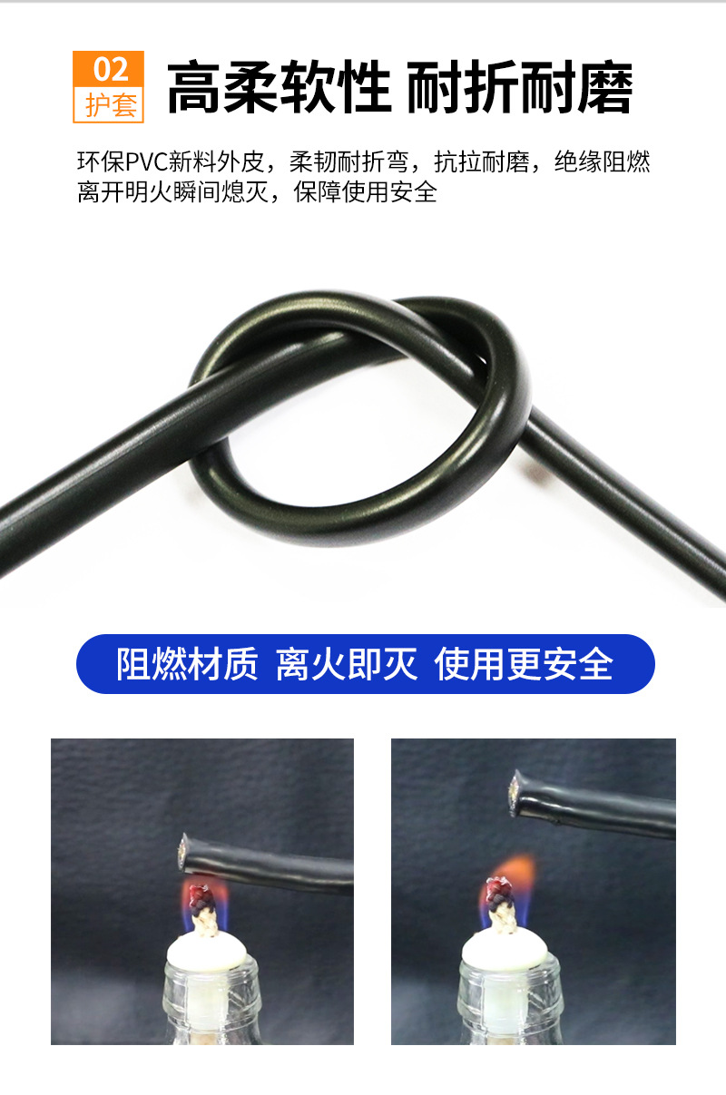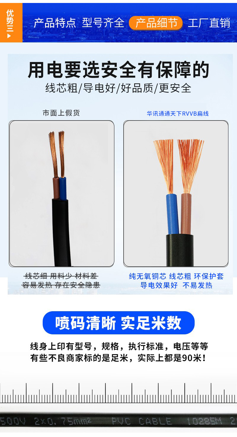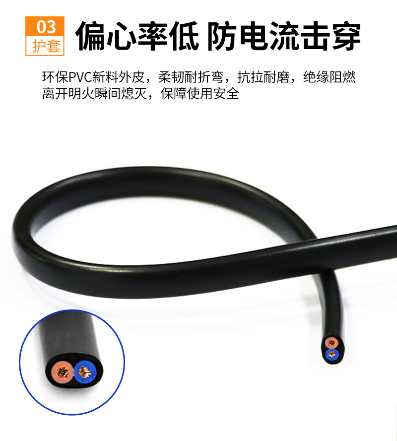 平たい形の保護カバー線RVVB純銅2芯多平方難燃シースソフトケーブル国標純銅家装工事用