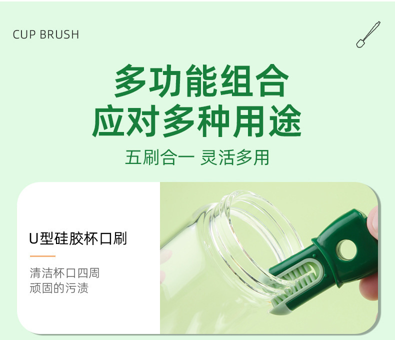 カップブラシ洗浄神器保温カップ蓋洗浄ブラシ五合一多機能長柄哺乳瓶カップストローブラシ卸売り