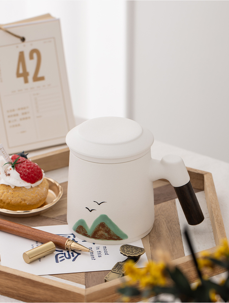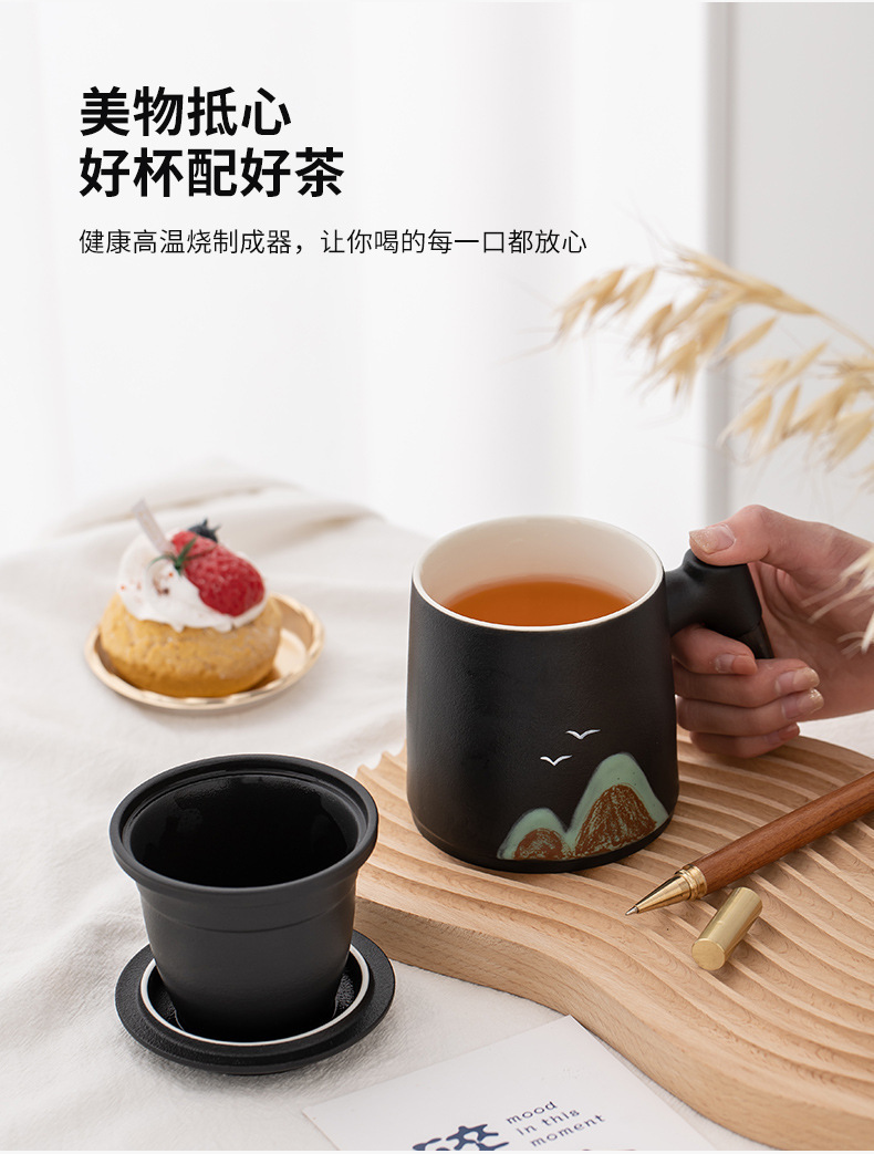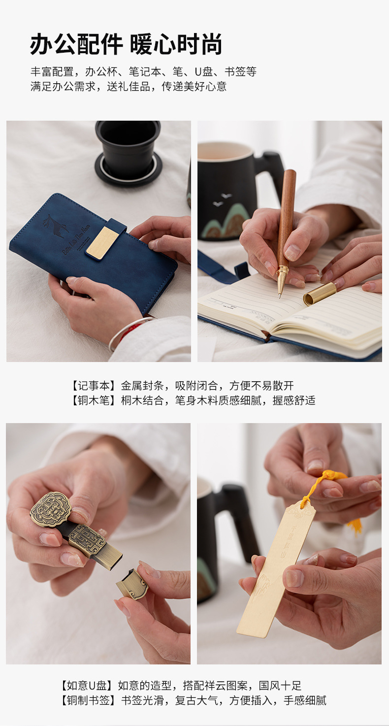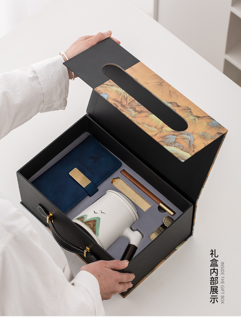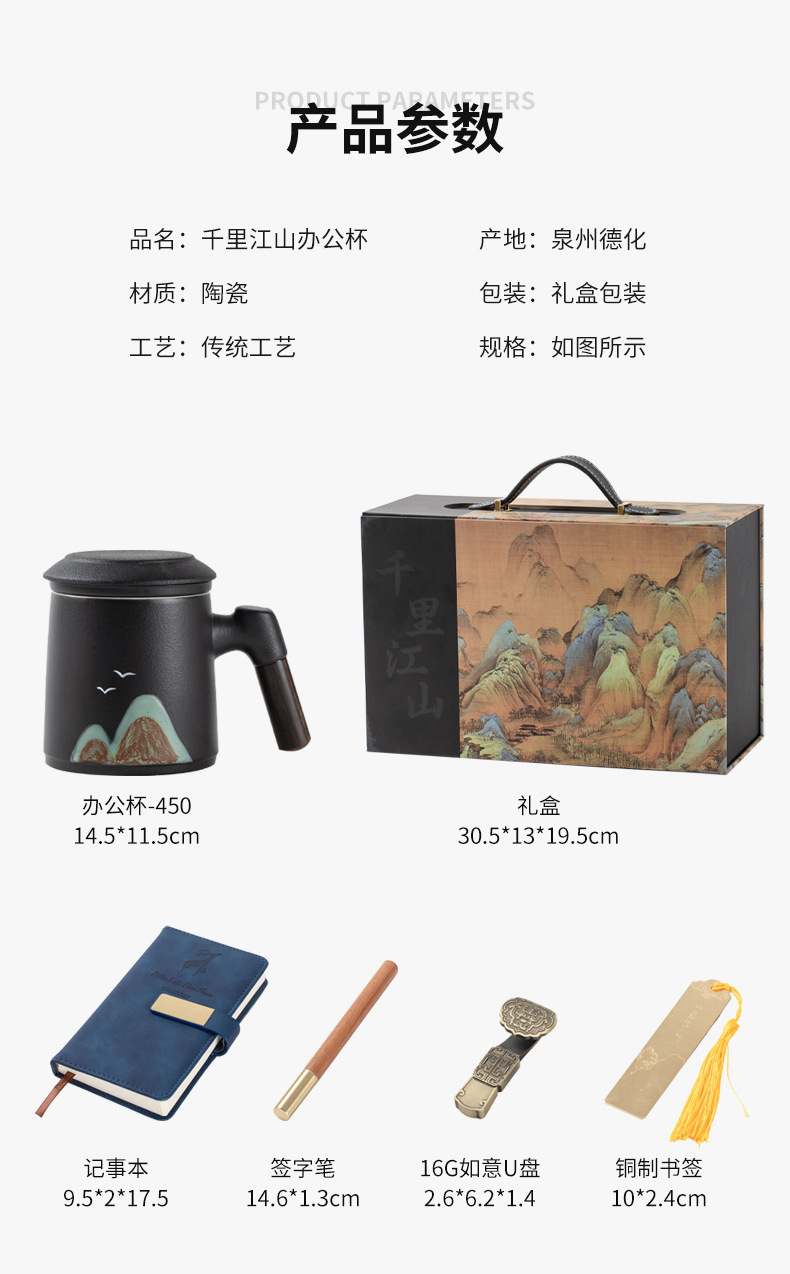教师节千里江山陶瓷杯带过滤办公杯笔记本礼盒套装公司商务伴手礼