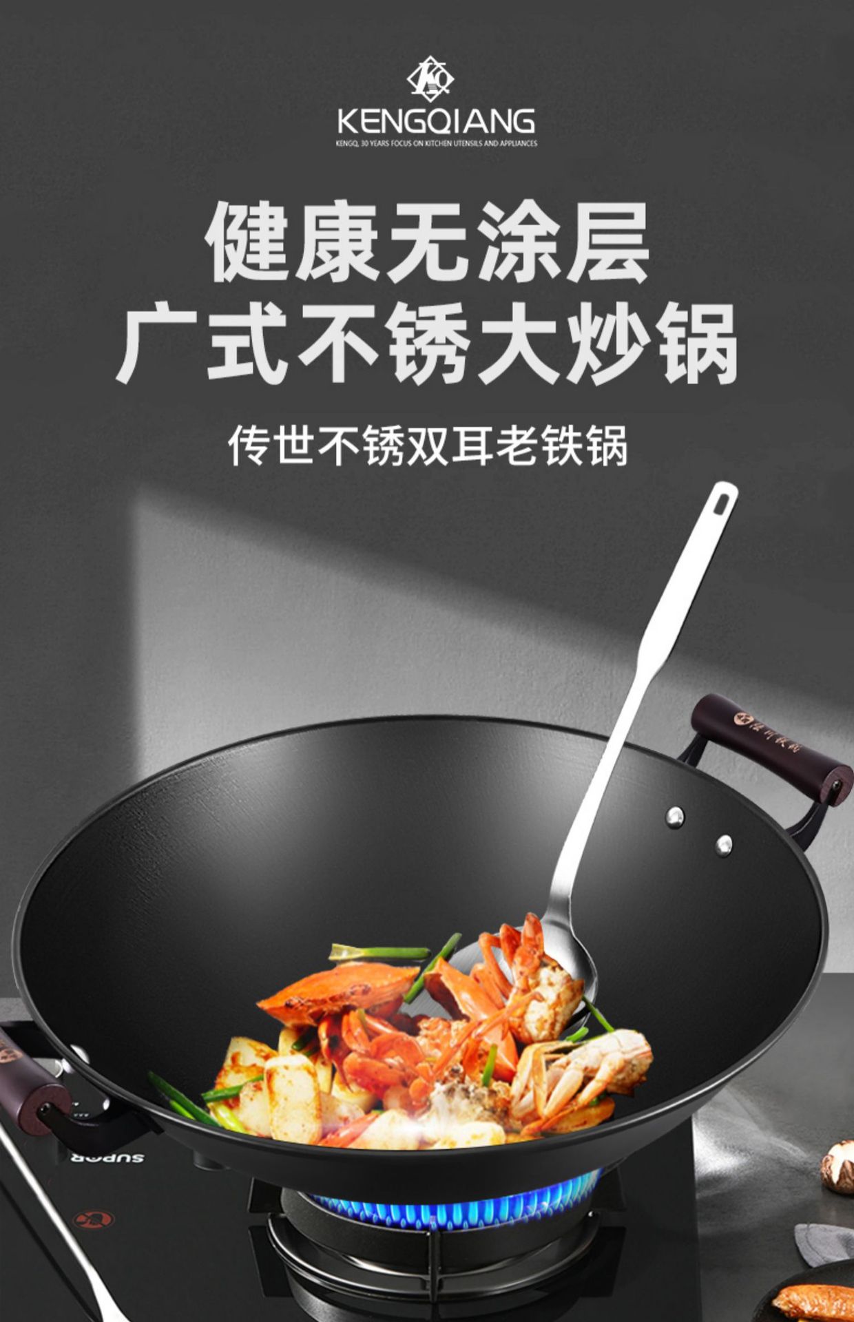 陸川鉄鍋公式旗艦旧式生鉄鋳鉄鍋炒め鍋家庭用電磁炉フライパン鉄鍋