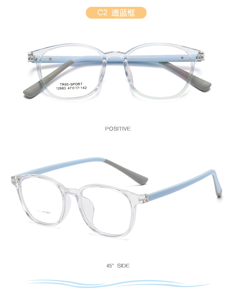 新型ファッションTR子供メガネ男女超軽量近視眼鏡枠滑り止め足文芸角型眼鏡フレーム